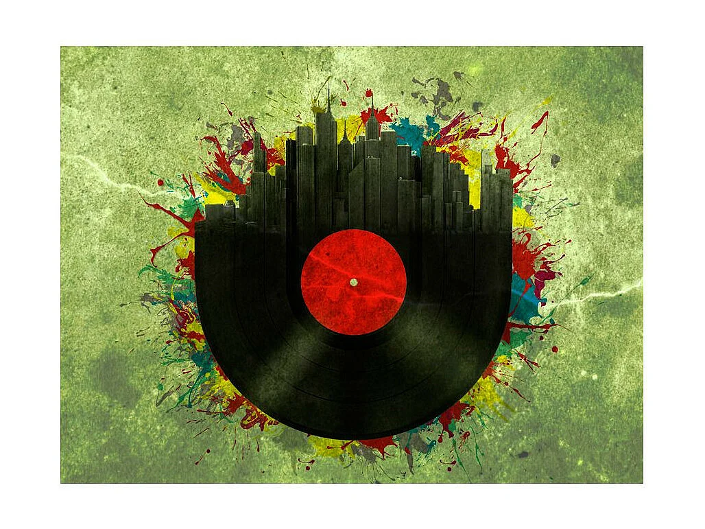 Papier Peint "Gramophone & Disque Vinyle" 231 x 300 cm