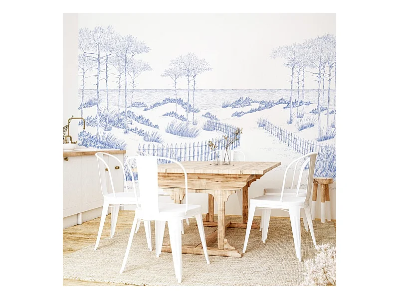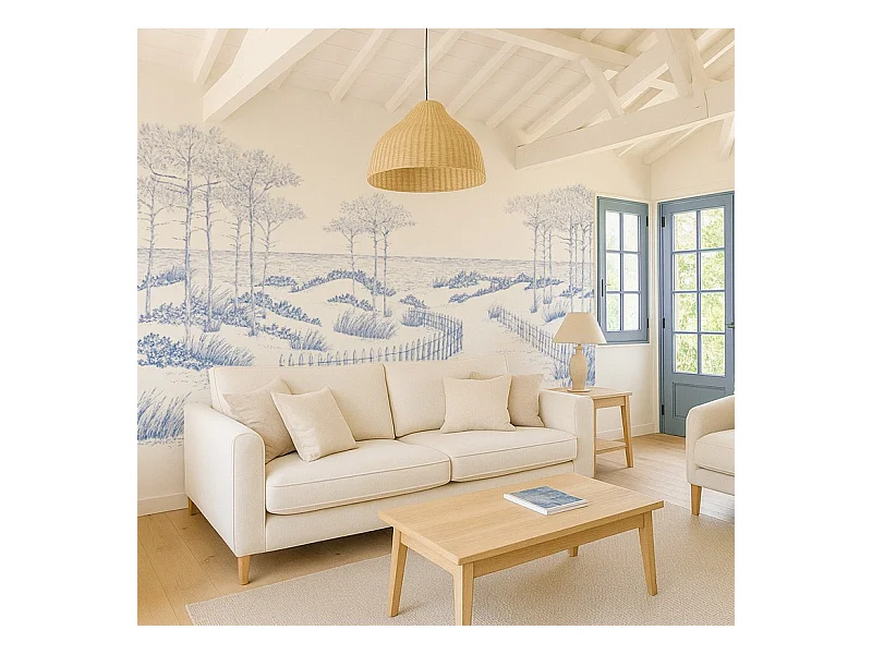 Papier peint panoramique - Les Landes - Bleu - intissé : 150g/m² - 7 lés : 336x270cm