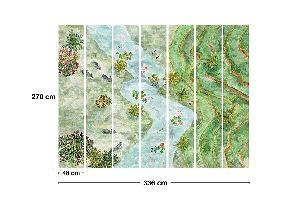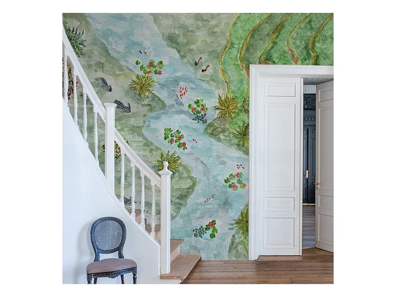 Papier peint panoramique - Rivière - Aquarelle - intissé : 150g/m² - 7 lés : 336x270cm
