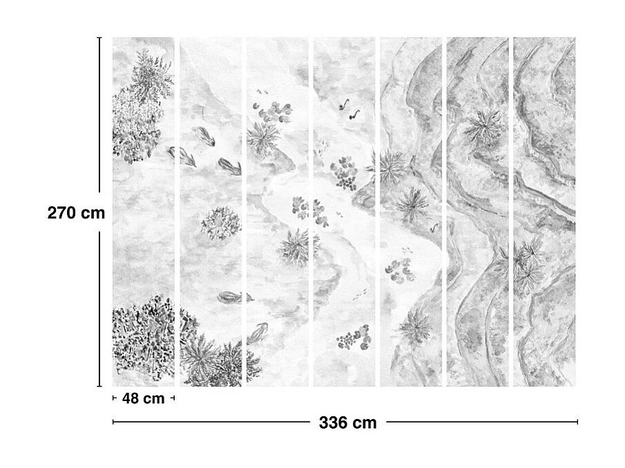 Papier peint panoramique - Rivière - Noir et Blanc - intissé : 150g/m² - 7 lés : 336x270cm