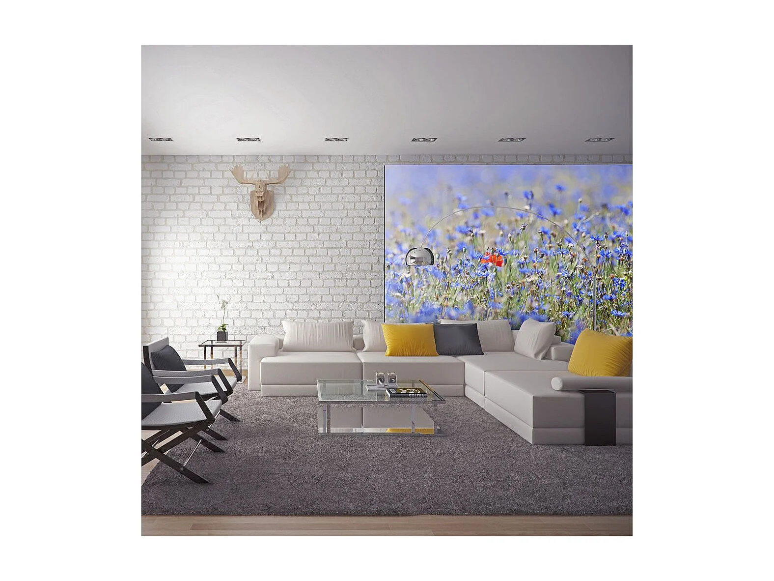 Papier Peint "Marguerite sur une Prairie Bleue" 193 x 250 cm