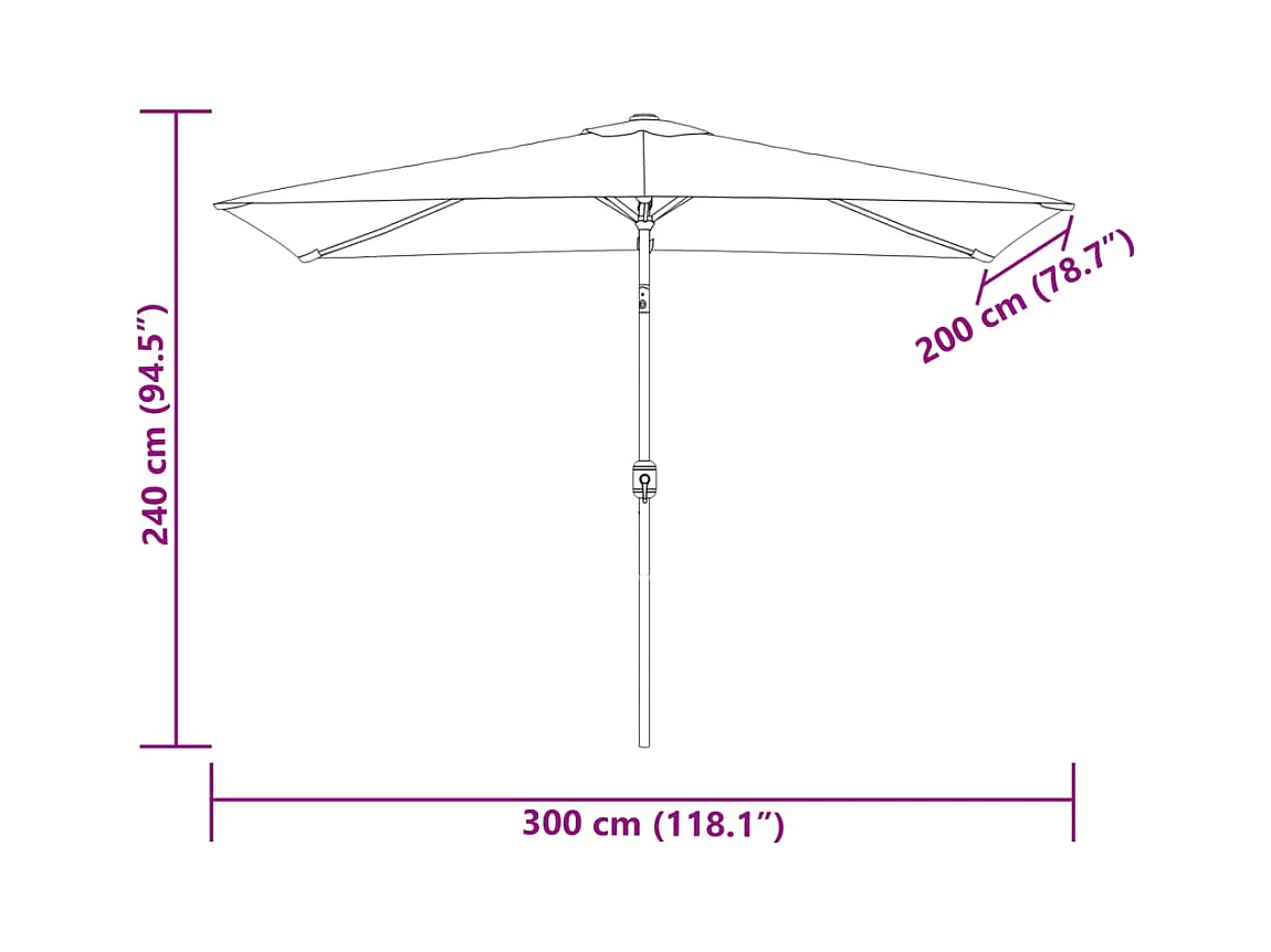 Parasol de jardin-Parasol d'extérieur avec mât en acier blanc 300x200x250 cm