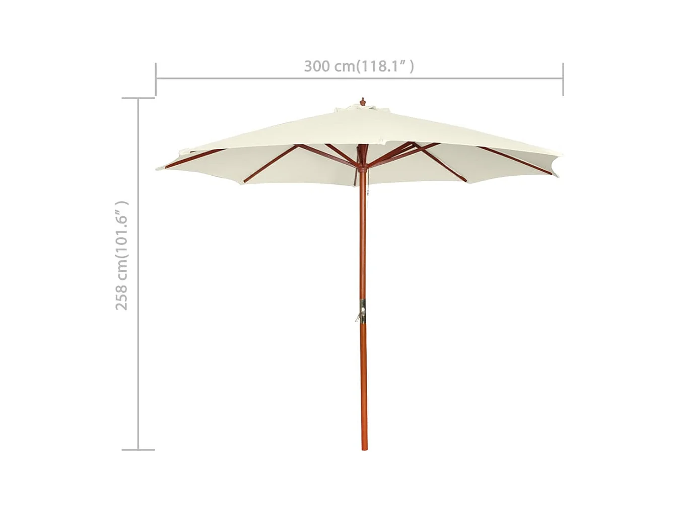 Parasol d'extérieur | Parasol de jardin avec mât en bois 330 cm blanc sable