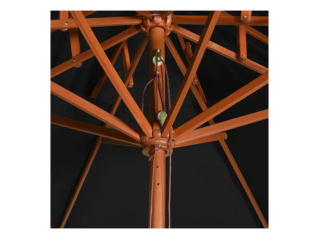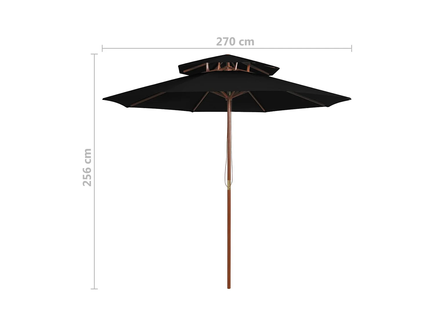 Parasol de jardin à deux étages avec mât en bois noir 270 cm