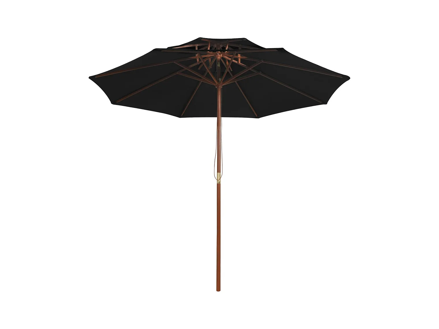 Parasol d'extérieur | Parasol de jardin avec mât en bois 350 cm Noir
