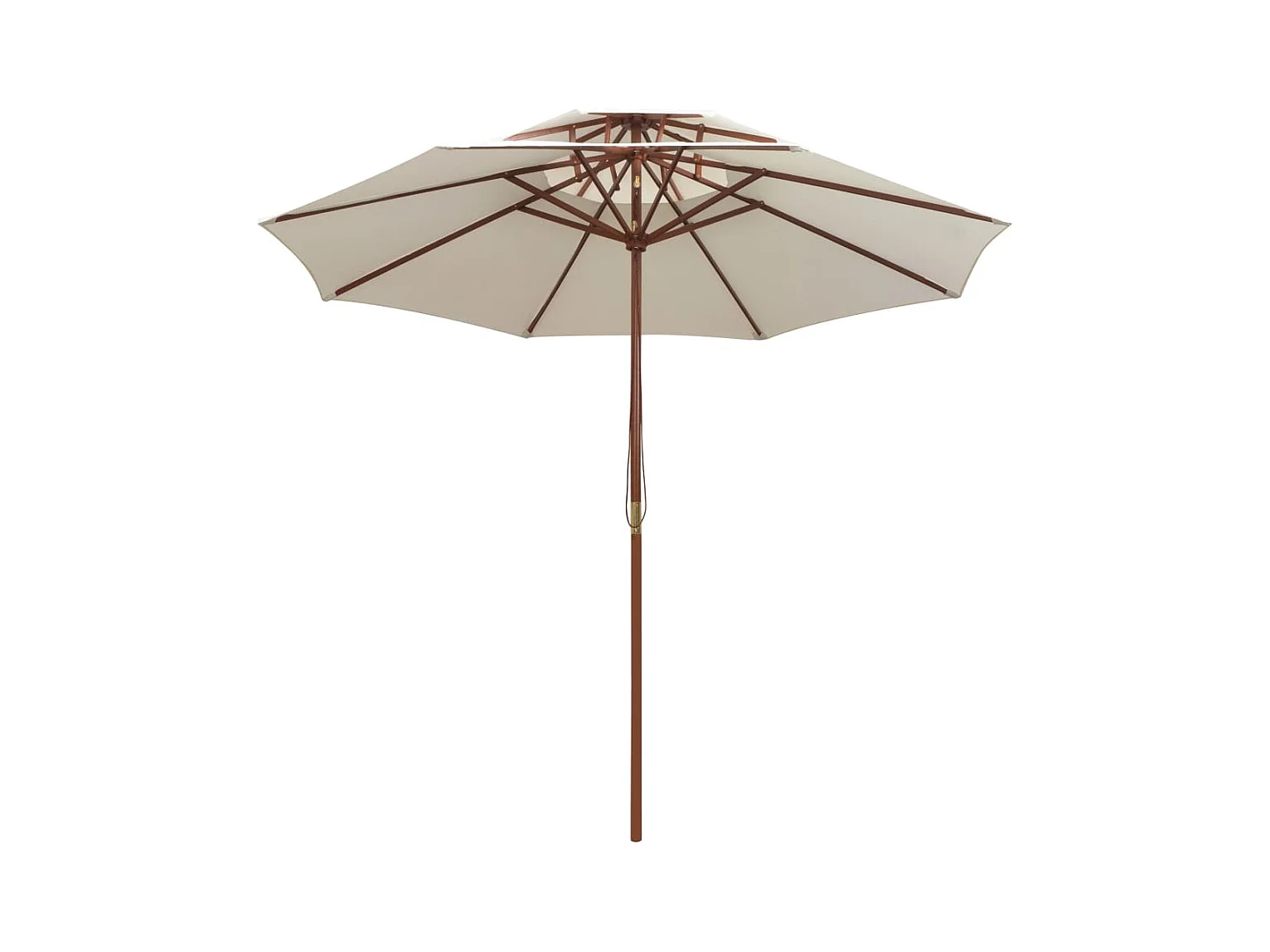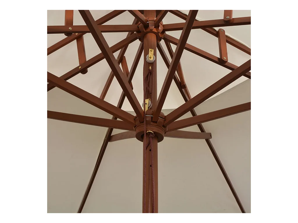 Parasol de jardin à deux étages avec poteau en bois blanc crème