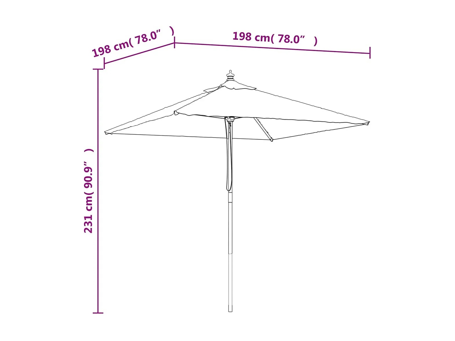 Parasol de jardin avec mât en bois rouge bordeaux 198x198x231
