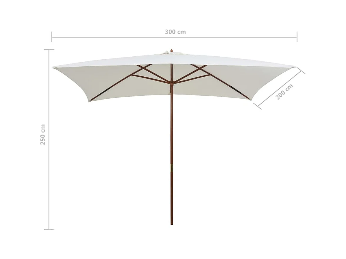 Parasol de jardin avec poteau en bois 200 x 300 cm Blanc crème