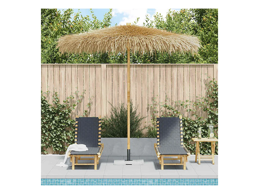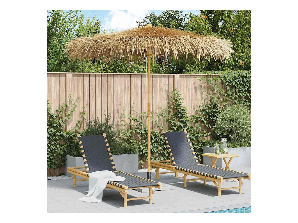 Parasol de jardin en bambou avec toit en feuille de bananier 210 cm
