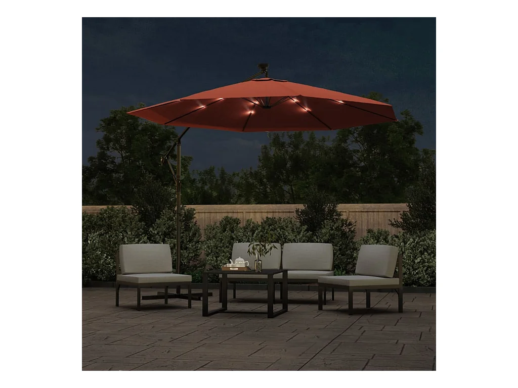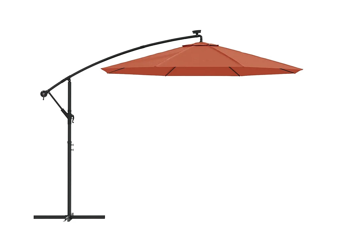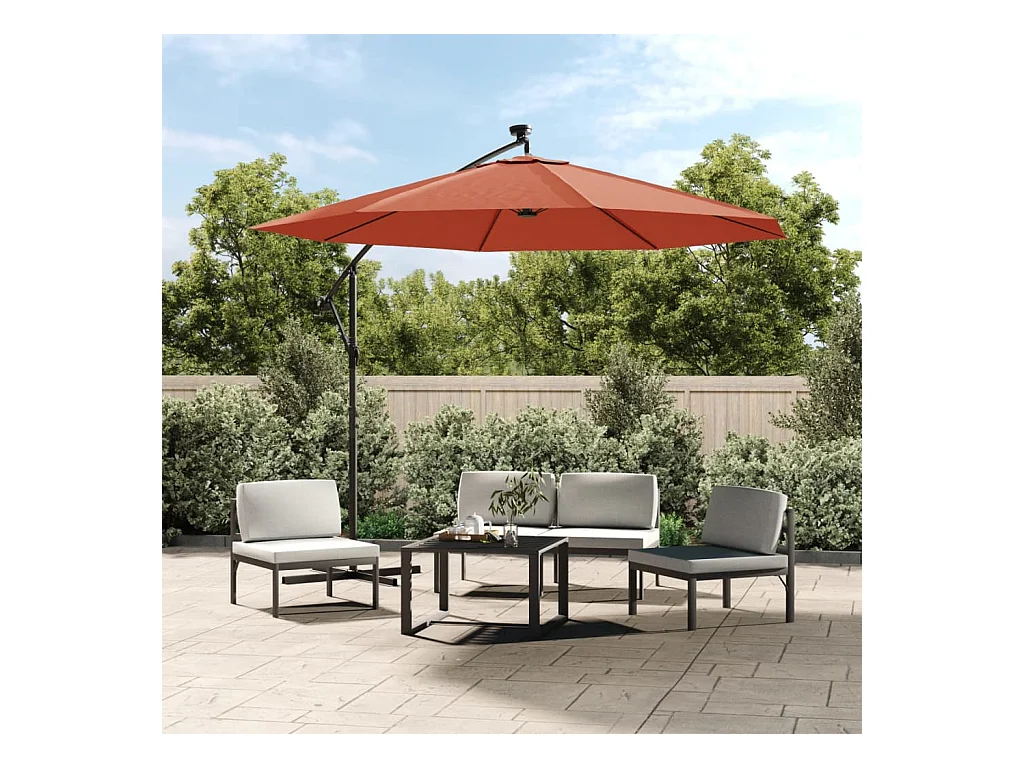 Parasol de jardin en porte-à-faux et lumières LED mât en acier