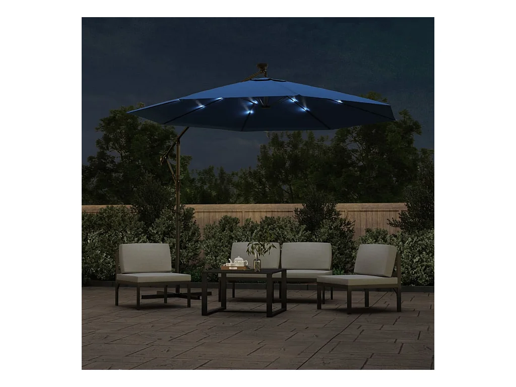 Parasol de jardin en porte-à-faux et lumières LED mât en acier