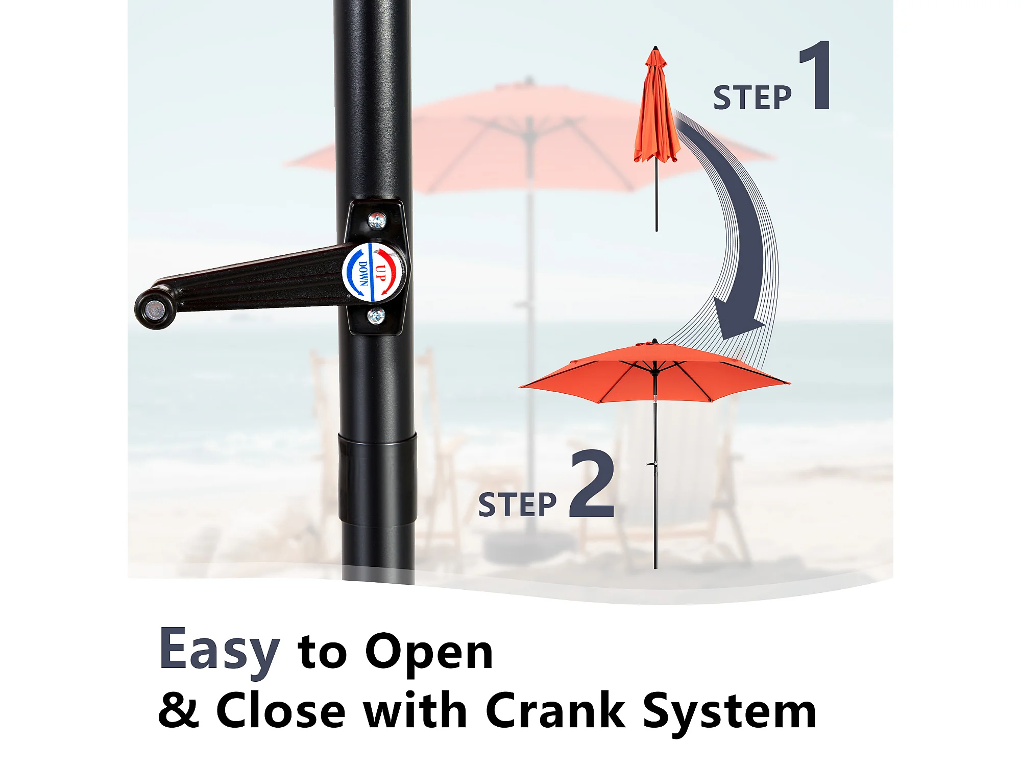 Parasol de jardin orange - Parasol extérieur monoposte - Protection solaire UPF 50+ - Grande taille de 264 cm pour terrasse et balcon