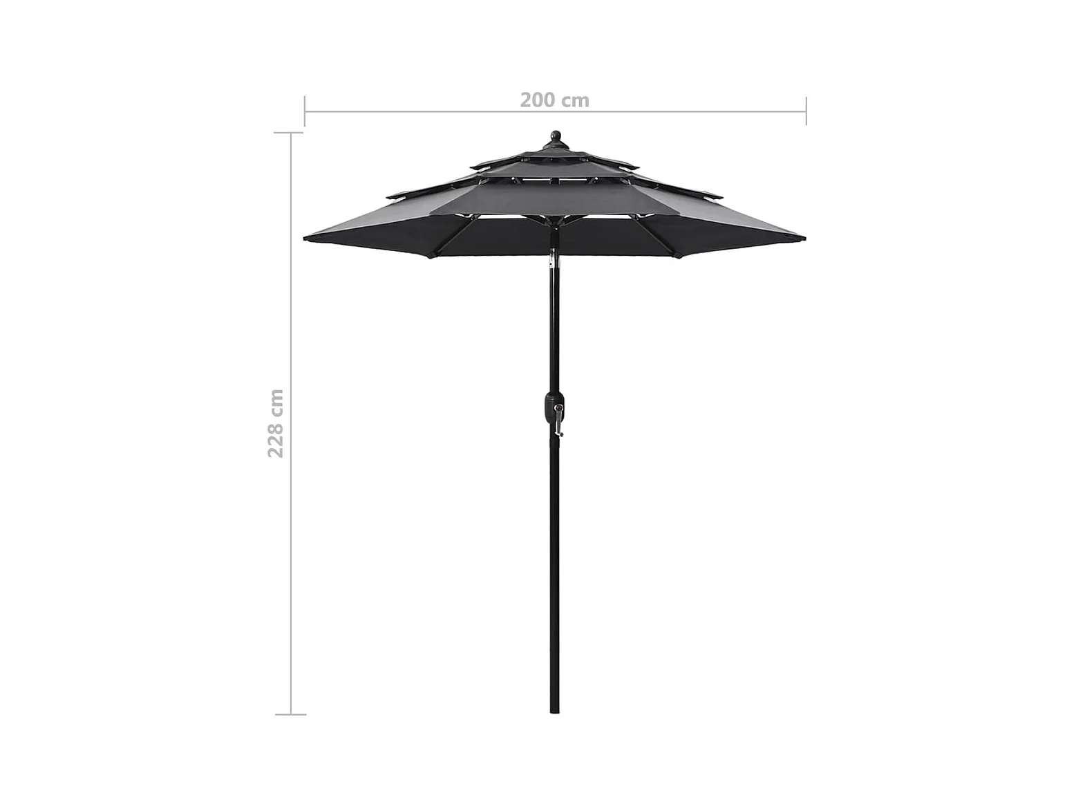 Parasol de jardin-Parasol à 3 niveaux avec mât en aluminium anthracite
