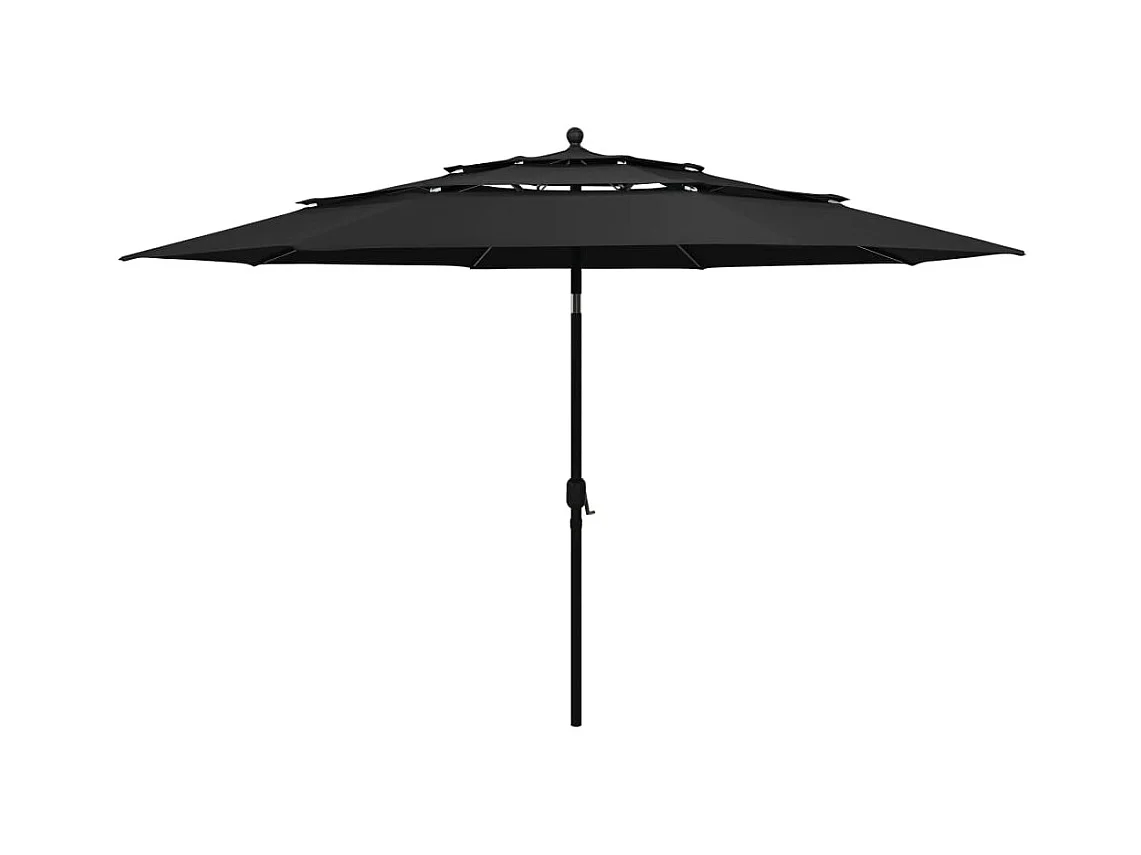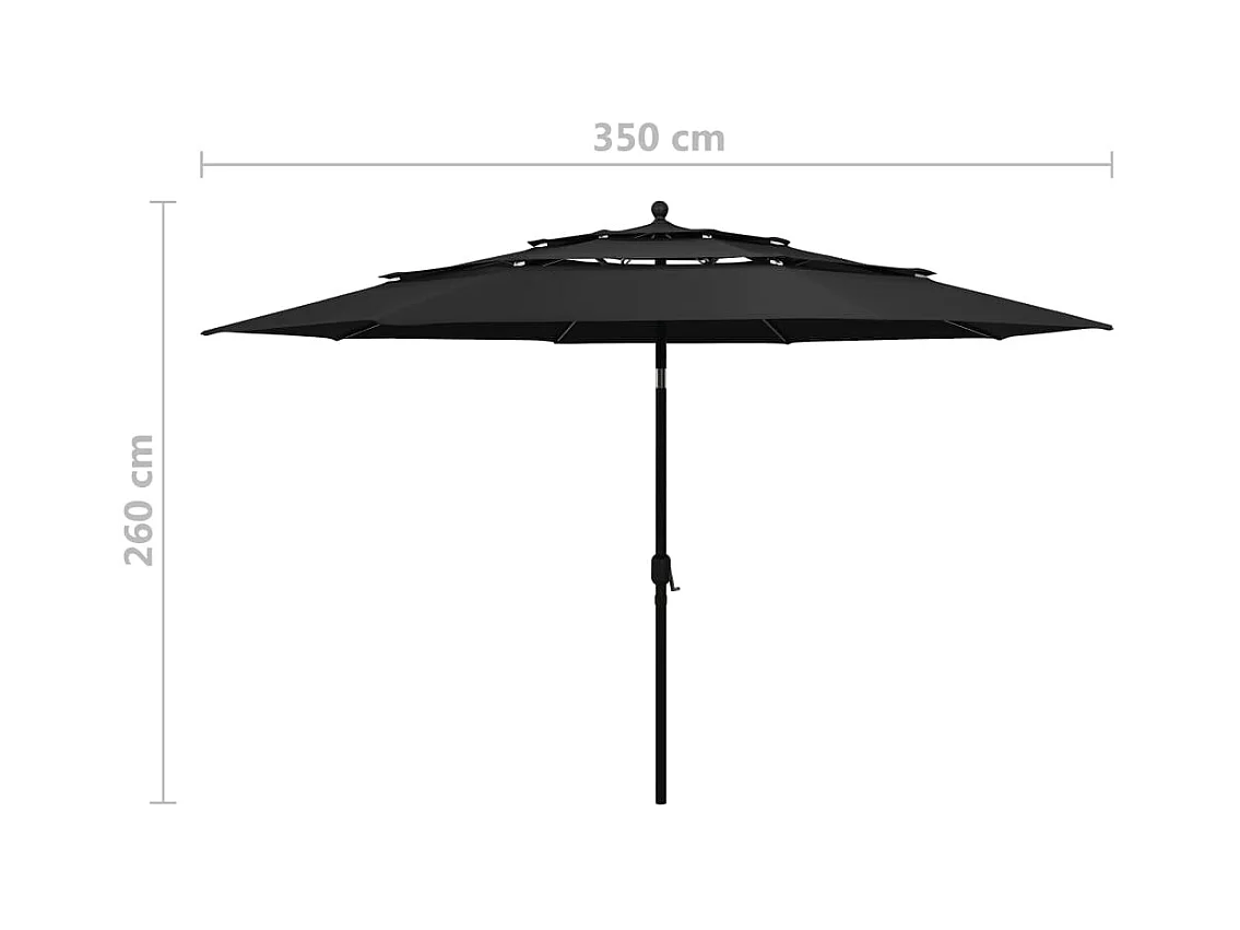 Parasol de jardin-Parasol à 3 niveaux avec mât en aluminium noir 3,5 m