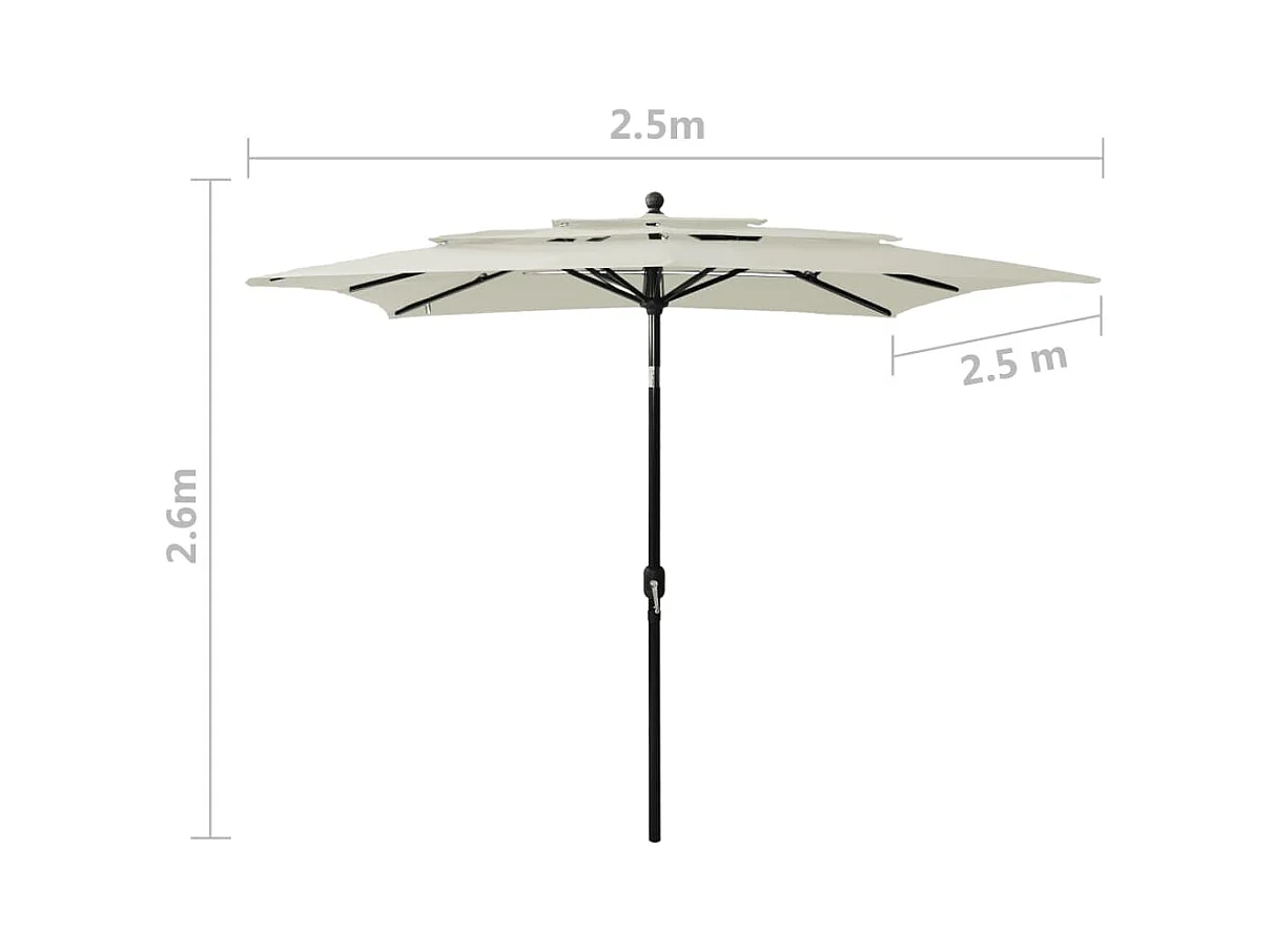 Parasol de jardin-Parasol à 3 niveaux avec mât en aluminium sable 2,5 m