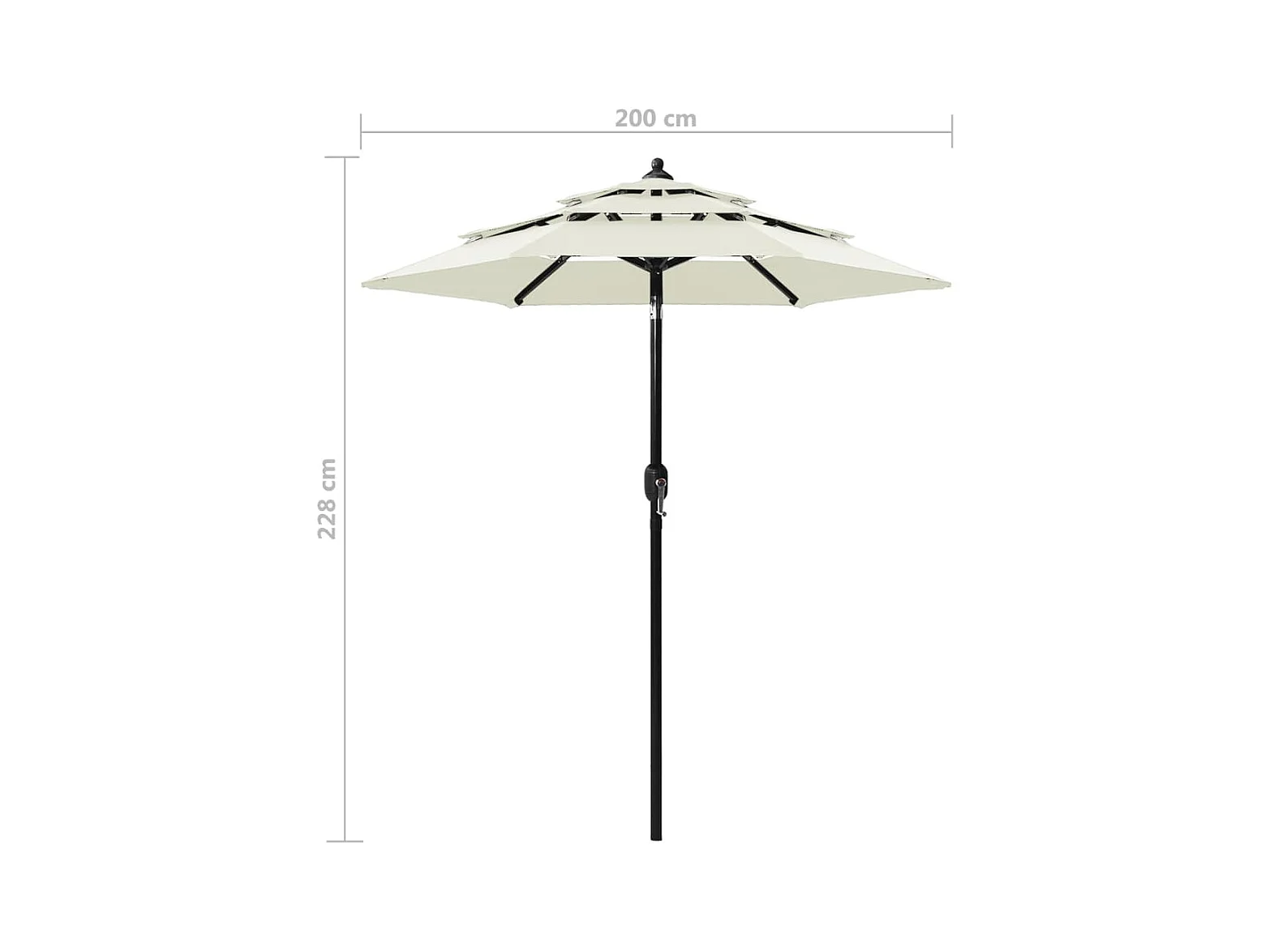 Parasol de jardin-Parasol à 3 niveaux avec mât en aluminium sable 2 m