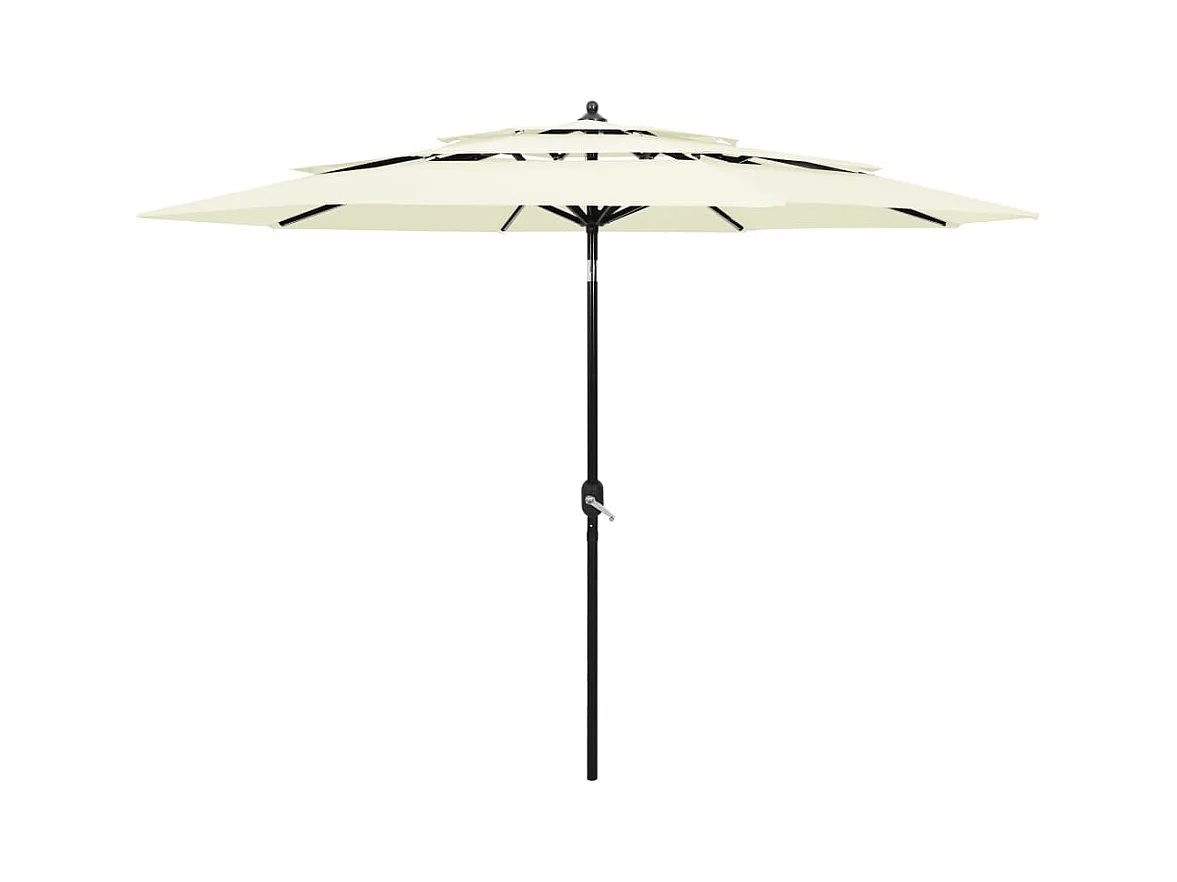 Parasol de jardin-Parasol à 3 niveaux avec mât en aluminium sable 3,5 m