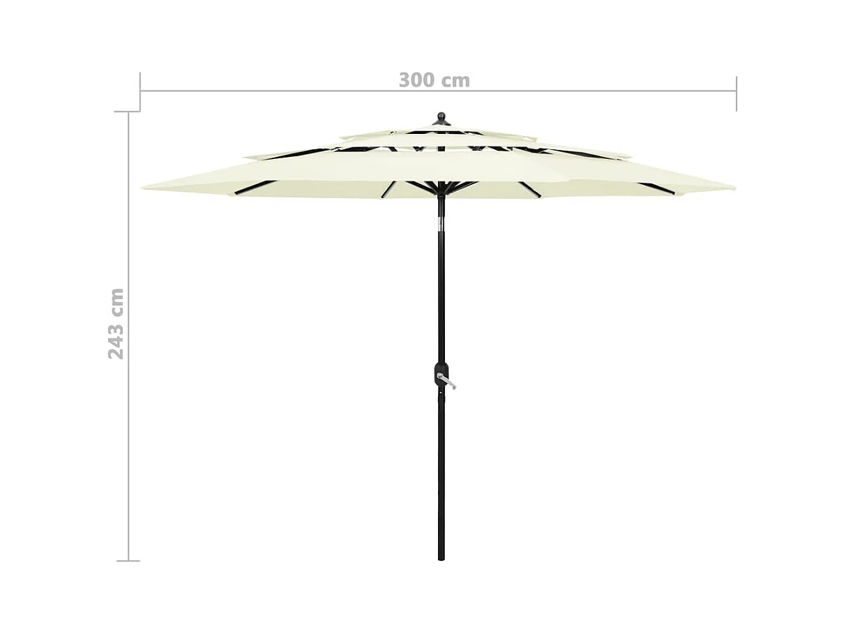 Parasol de jardin-Parasol à 3 niveaux avec mât en aluminium sable 3 m