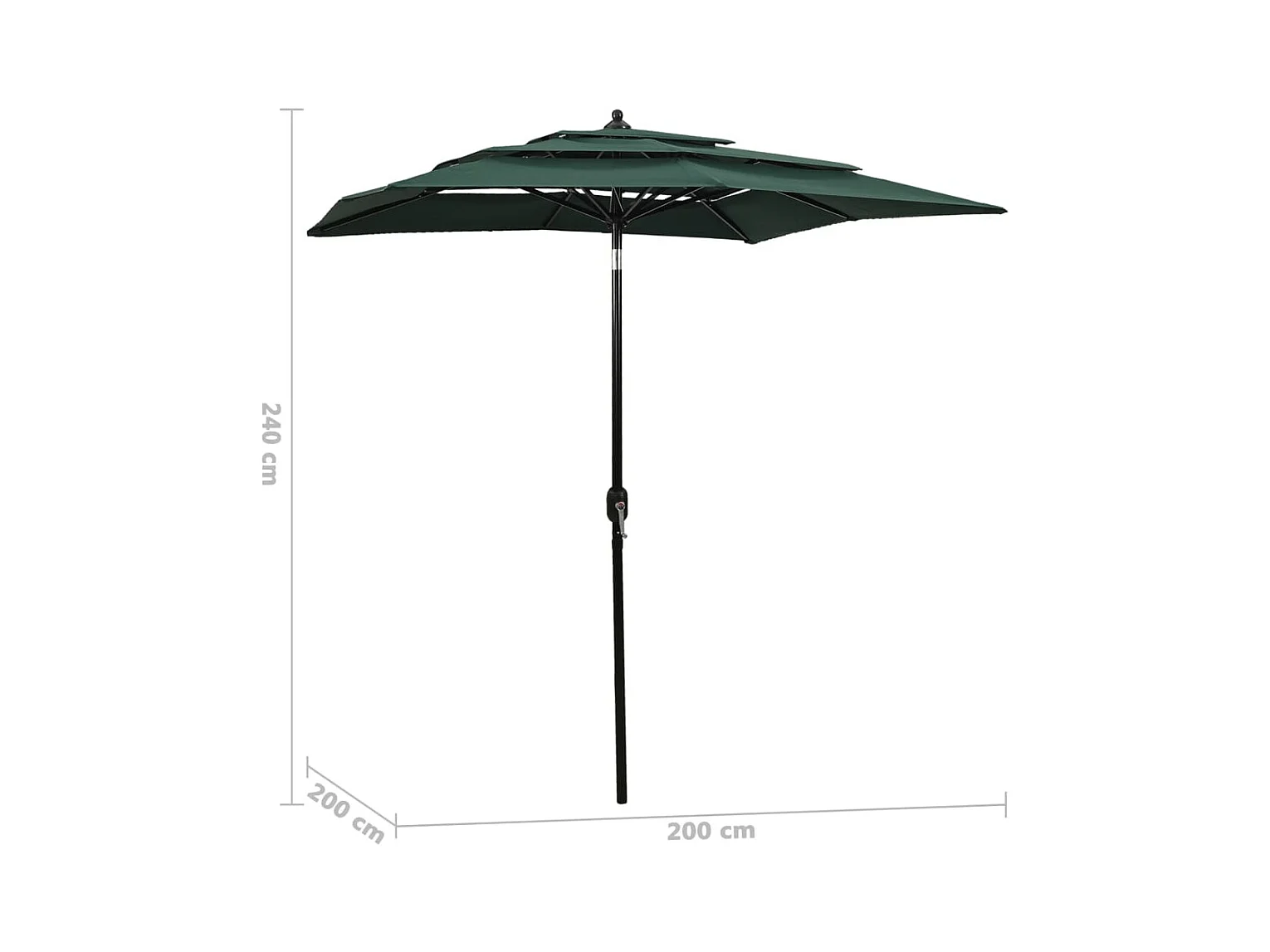Parasol de jardin-Parasol à 3 niveaux avec mât en aluminium vert