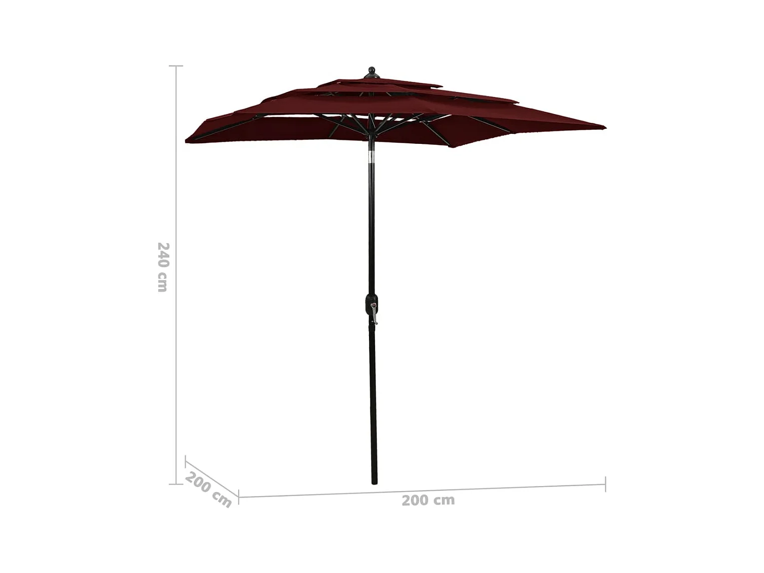 Parasol de jardin-Parasol à 3 niveaux mât en aluminium rouge bordeaux