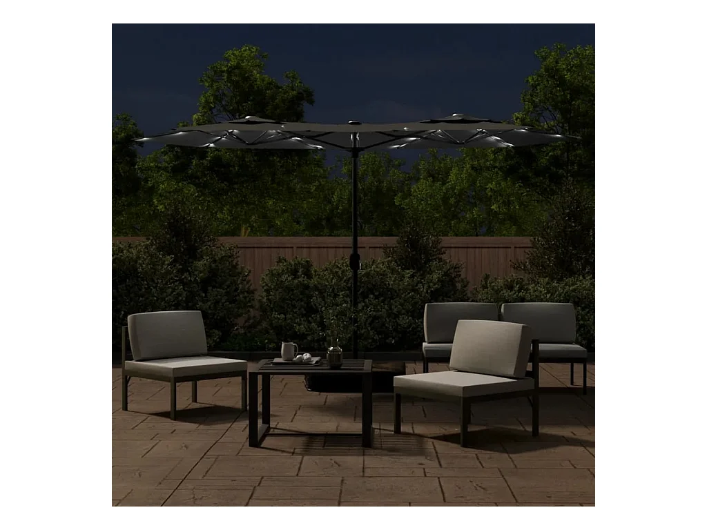 Parasol de jardin-Parasol à double tête avec LED anthracite 316x145 cm