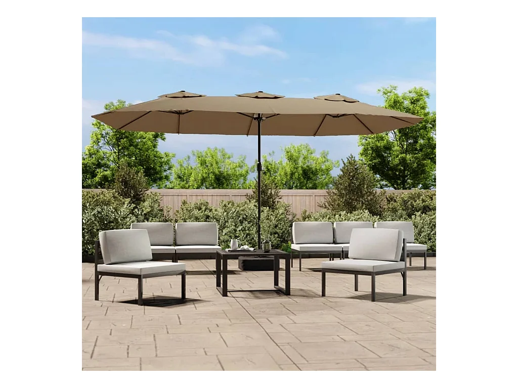 Parasol de jardin-Parasol à double tête avec LED taupe 449x265 cm