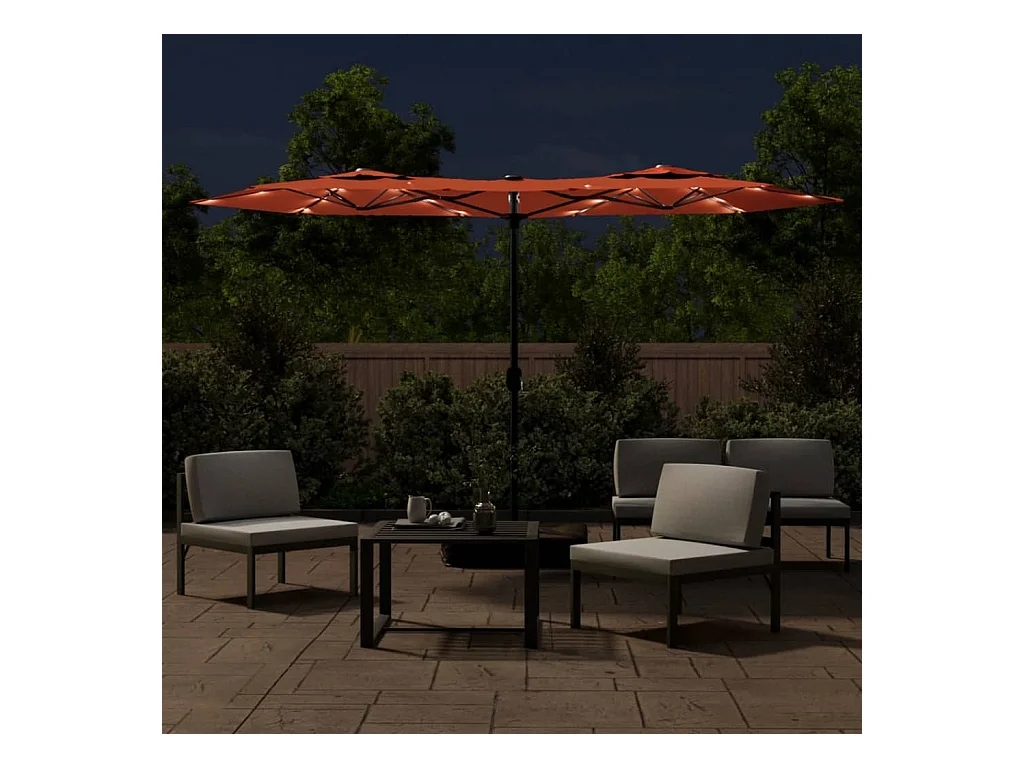 Parasol de jardin-Parasol à double tête avec LED terre cuite 316x145 cm