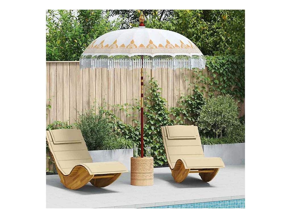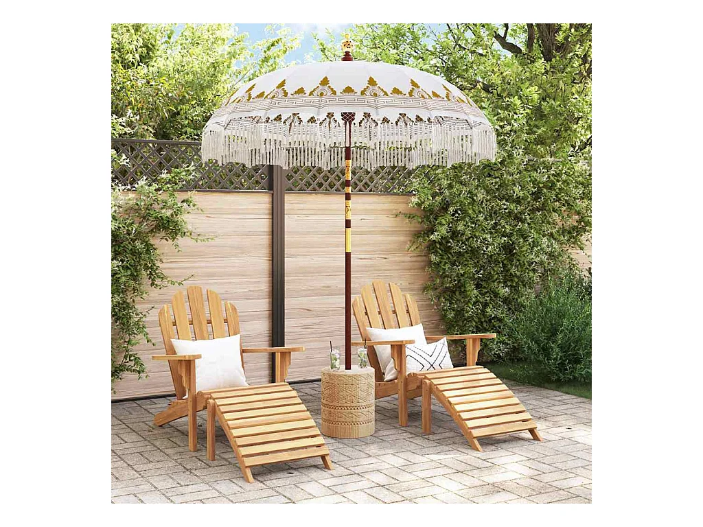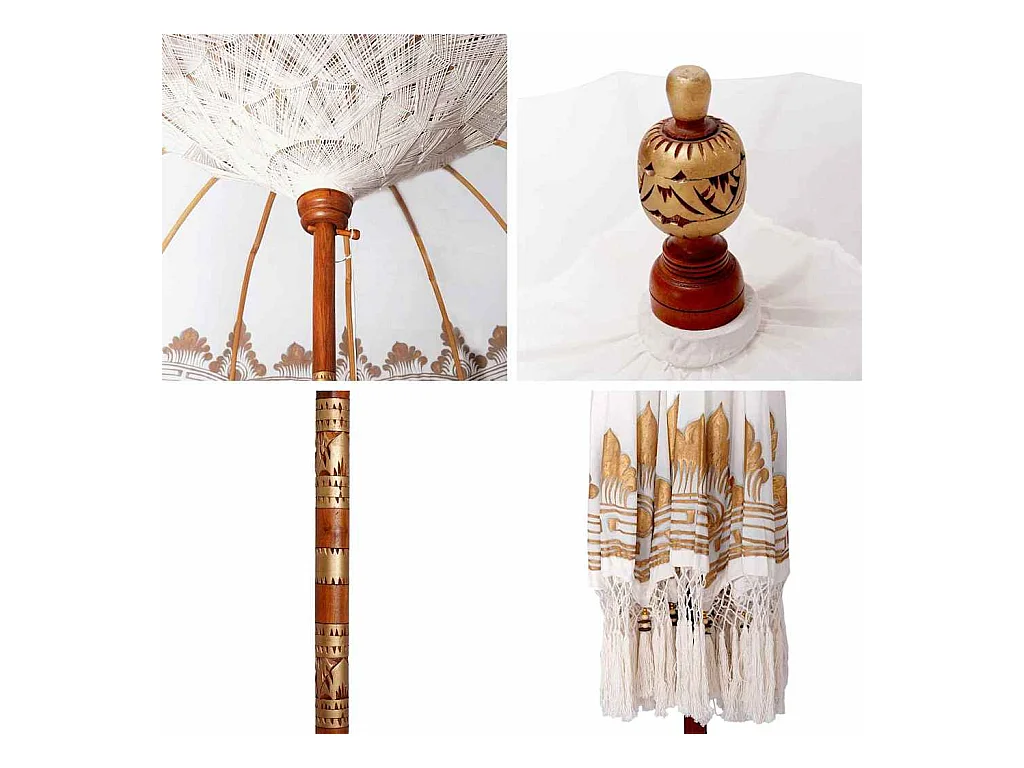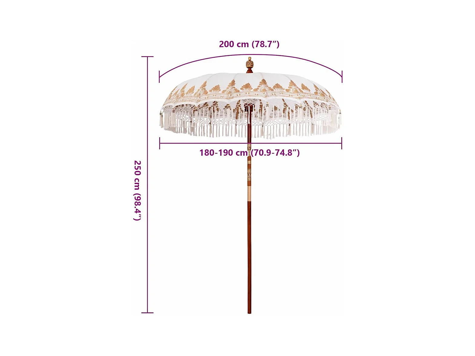Parasol de jardin-Parasol balinais Crème (180-190) x 260 cm Coton et bois massif