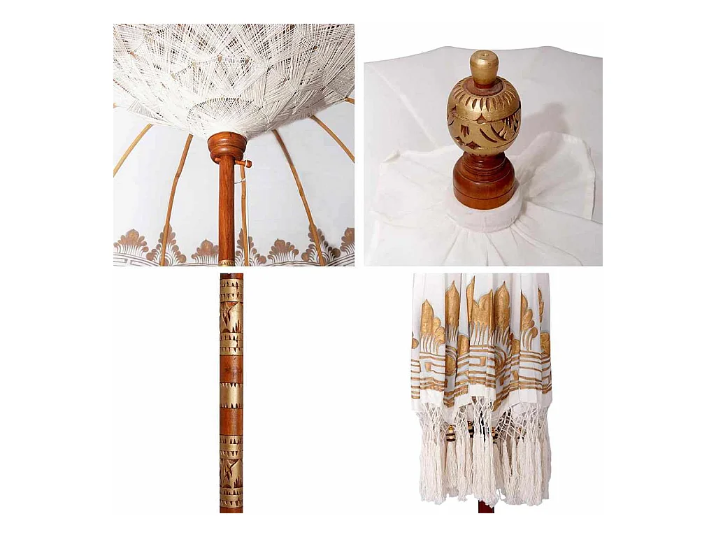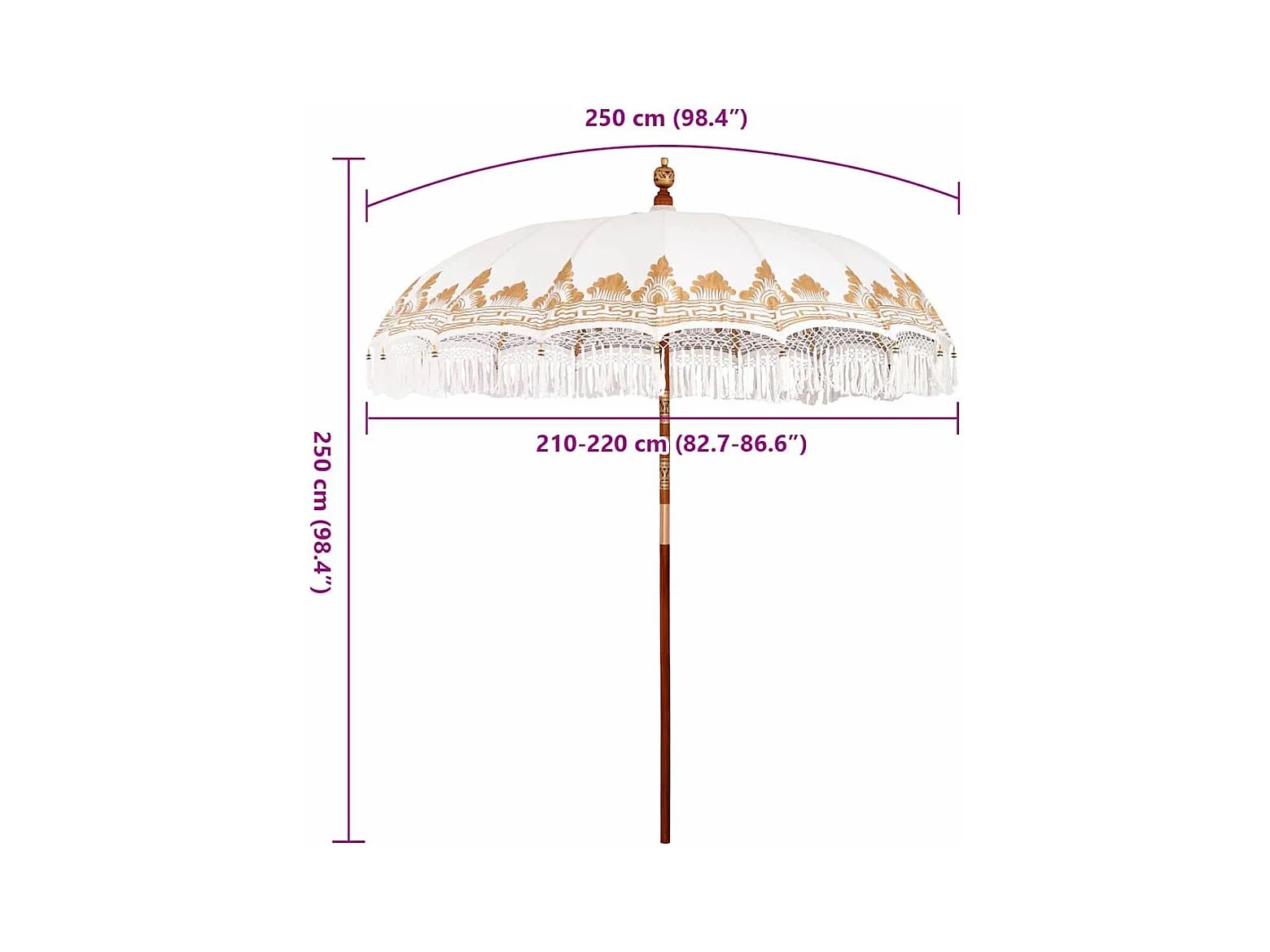 Parasol de jardin-Parasol balinais Crème (210-220) x 260 cm Coton et bois massif
