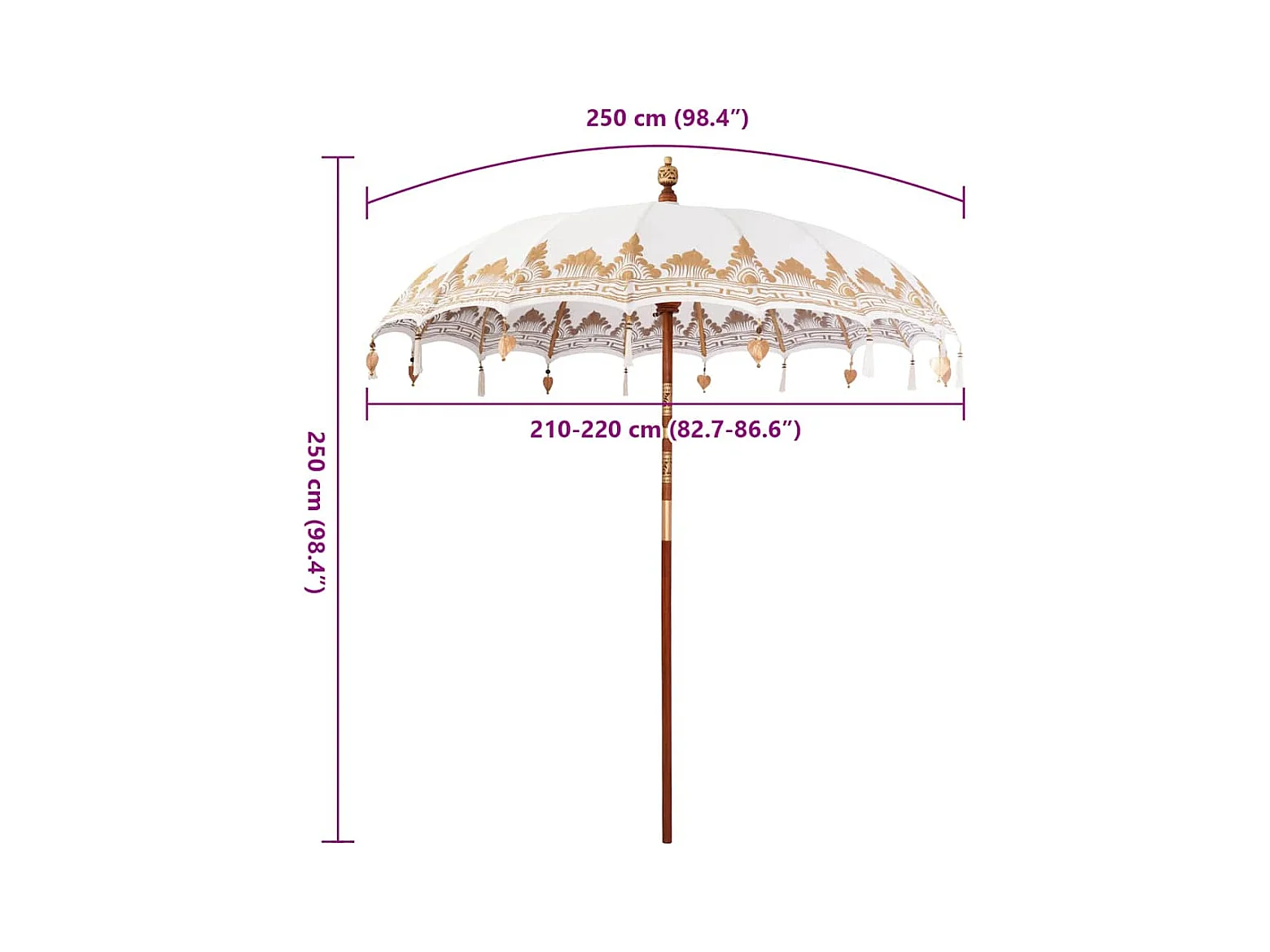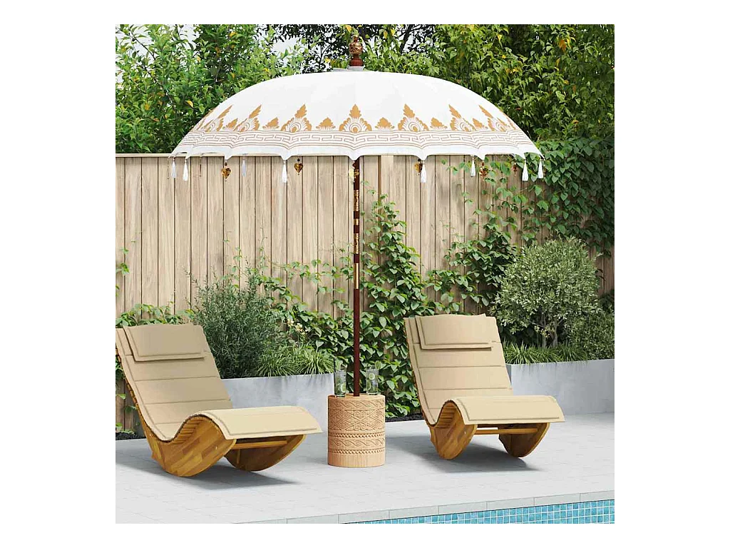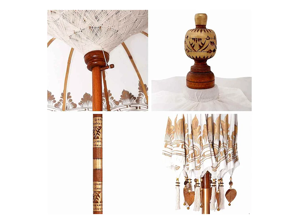 Parasol de jardin-Parasol balinais Crème (210-220) x 260 cm Coton et bois massif