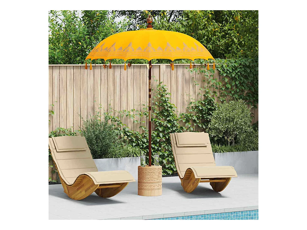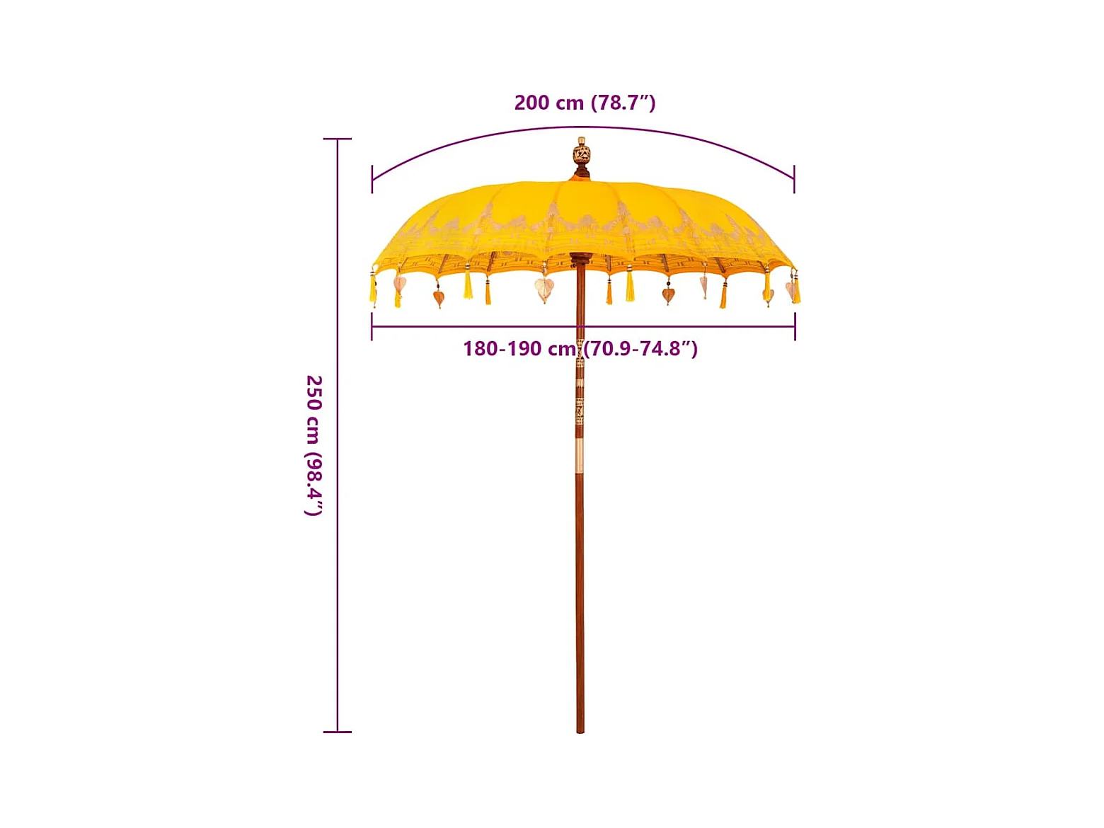 Parasol de jardin-Parasol balinais Jaune (180-190) x 260 cm Coton et bois massif