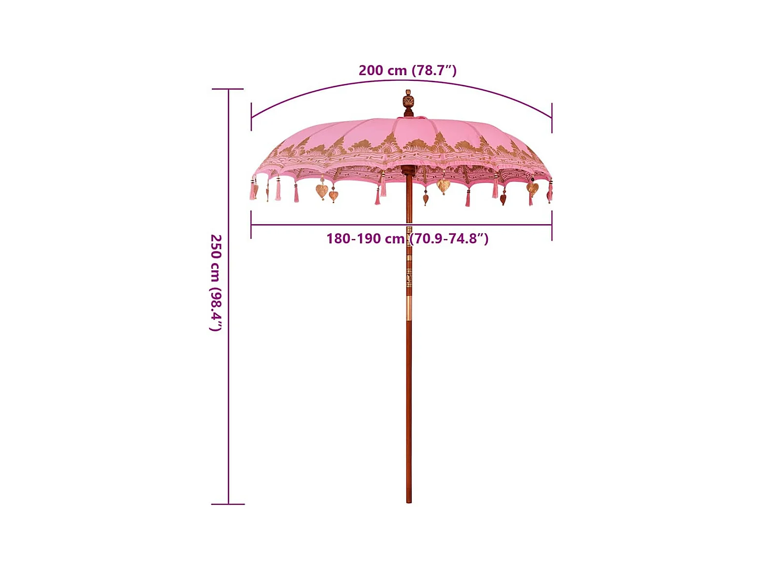 Parasol de jardin-Parasol balinais Rose (180-190) x 260 cm Coton et bois massif