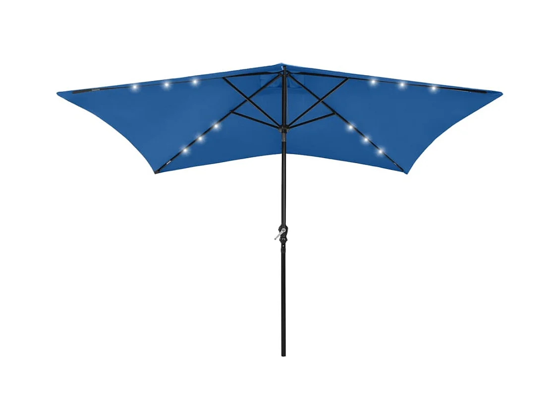 Parasol de jardin-Parasol d'extérieur avec LED et mât en acier bleu azuré 2x3 m