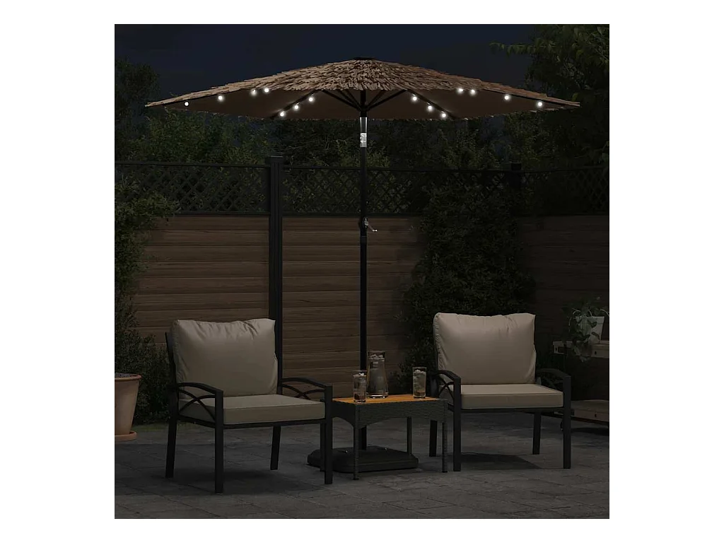 Parasol de jardin-Parasol d'extérieur avec LED et mât en acier marron 223x223x213cm