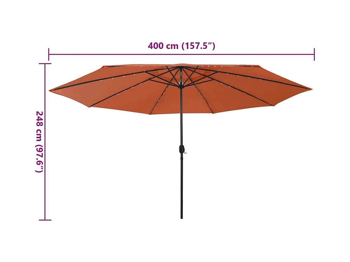Parasol de jardin-Parasol d'extérieur avec lumières LED et mât en acier terre cuite