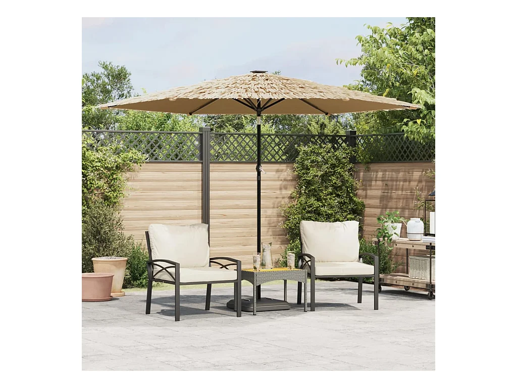 Parasol de jardin-Parasol d'extérieur avec LED et mât en acier marron 288x288x225cm