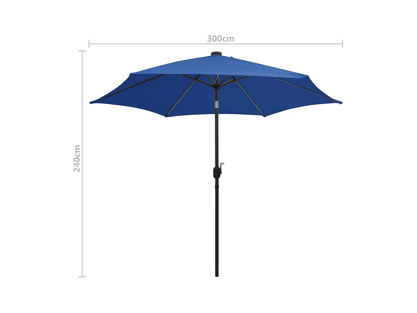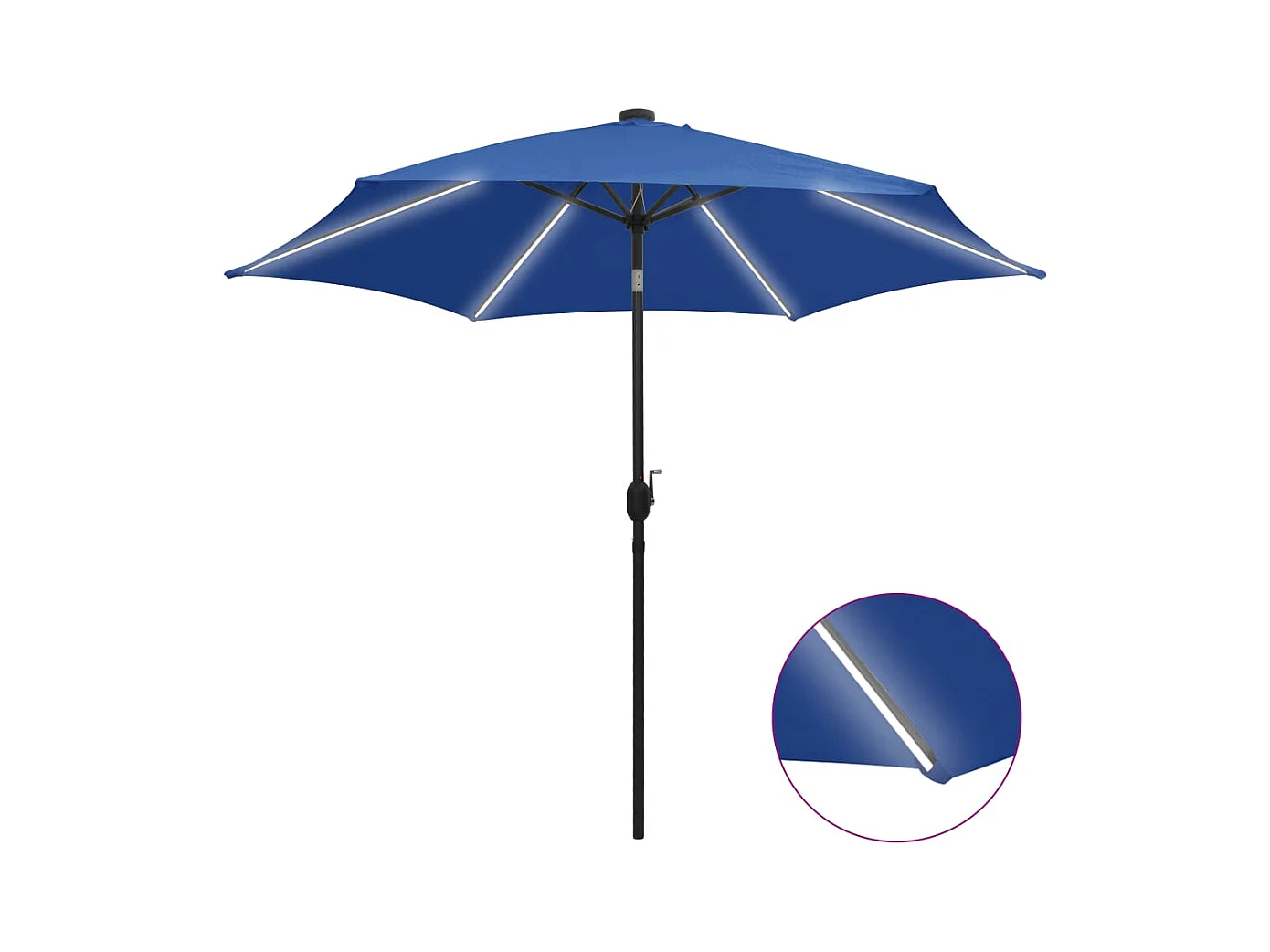 Parasol de jardin-Parasol d'extérieur et lumières LED mât en aluminium bleu azuré