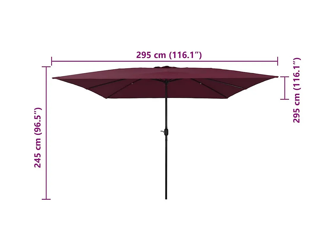 Parasol de jardin XXL parasol grande taille 4,6L x 2,7l x 2,4H m ouverture fermeture manivelle acier polyester haute densité bordeaux