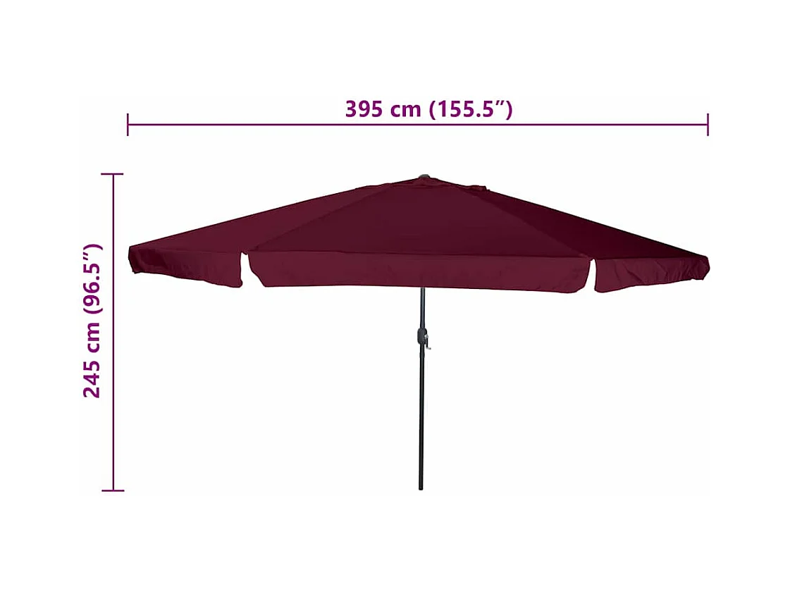 Parasol de jardin XXL parasol grande taille 4,6L x 2,7l x 2,4H m ouverture fermeture manivelle acier polyester haute densité bordeaux