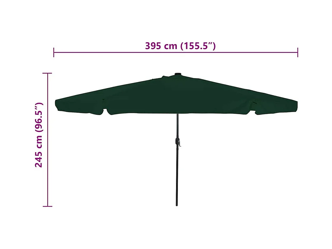 Parasol de jardin-Parasol d'extérieur Vert et Noir 395 x 395 x 245 cm