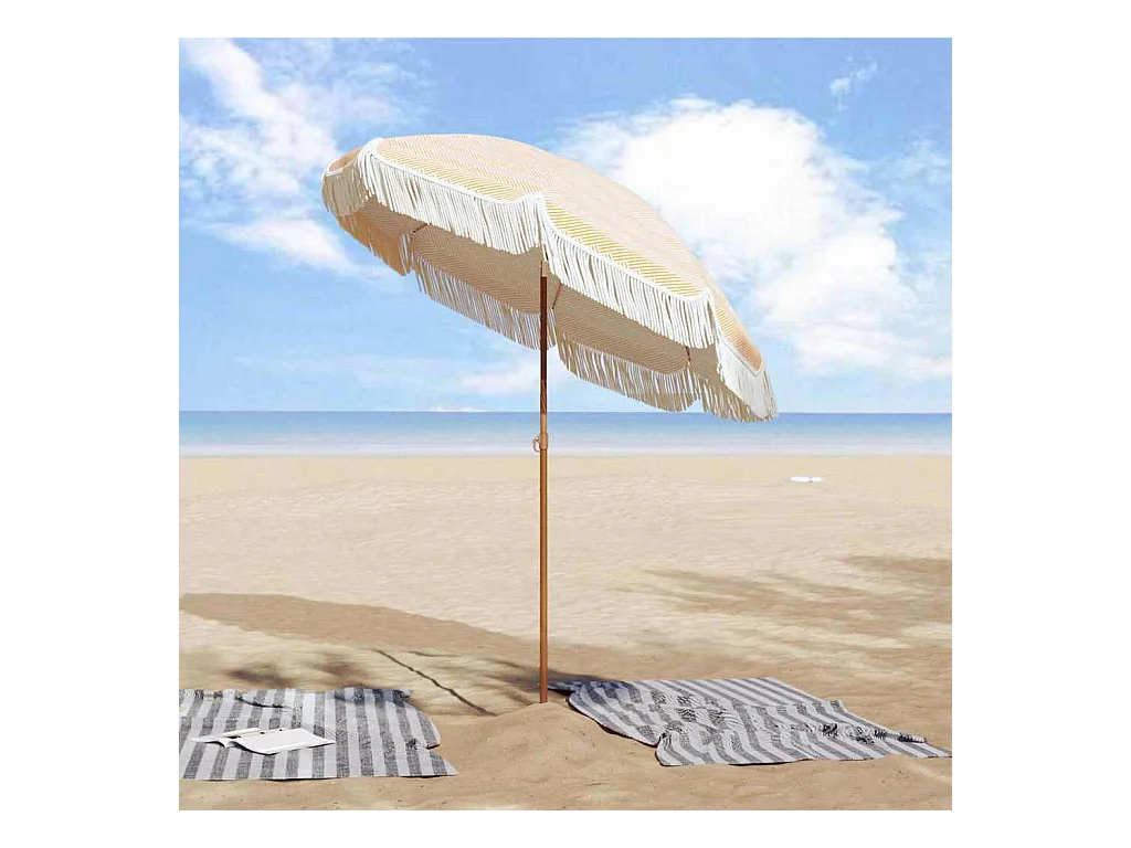 Beach Parasol en toile Cachemire jaune - ø160 cm - UPF50+ - Vis à sable - Inclinable - H210 cm