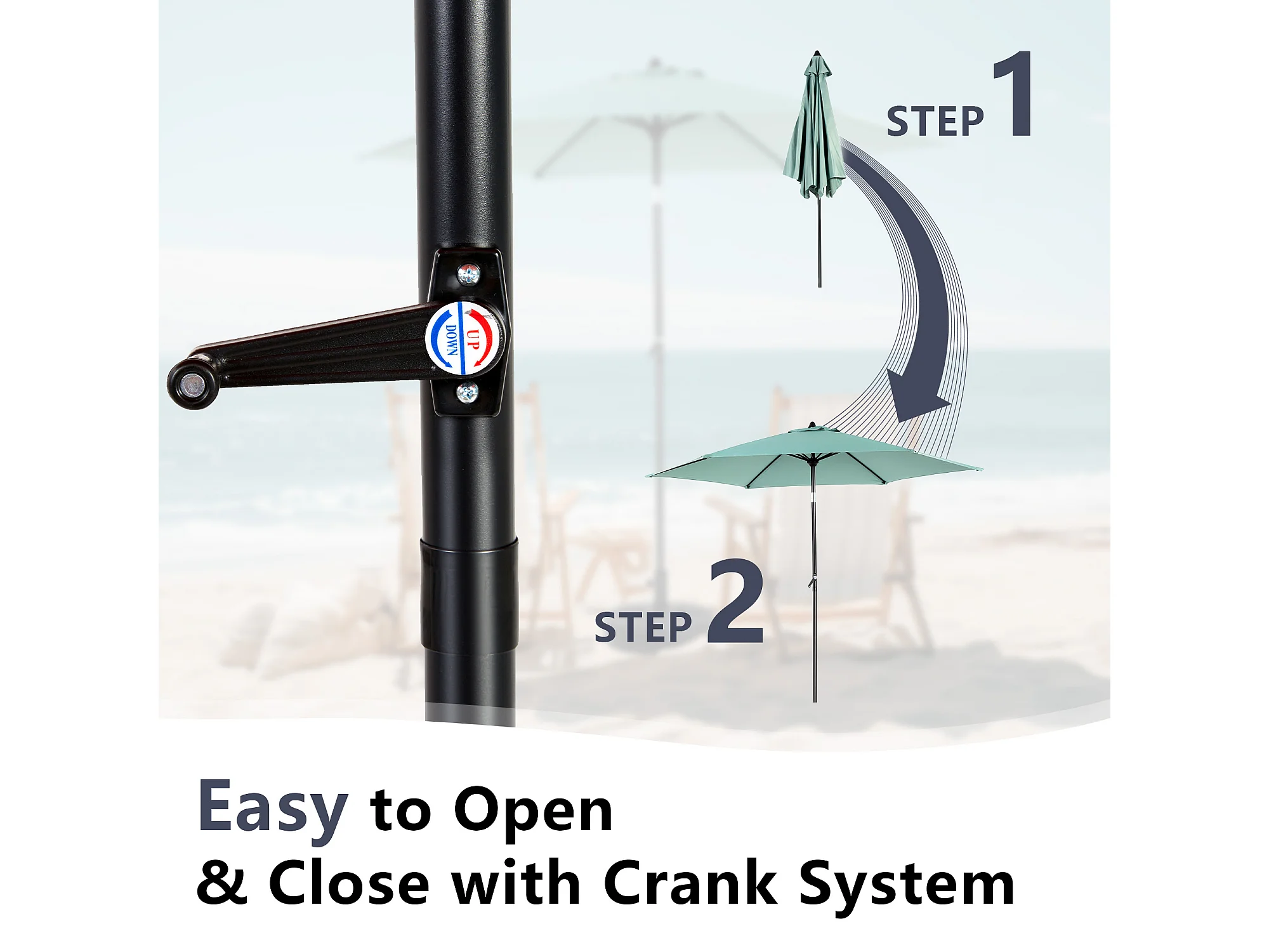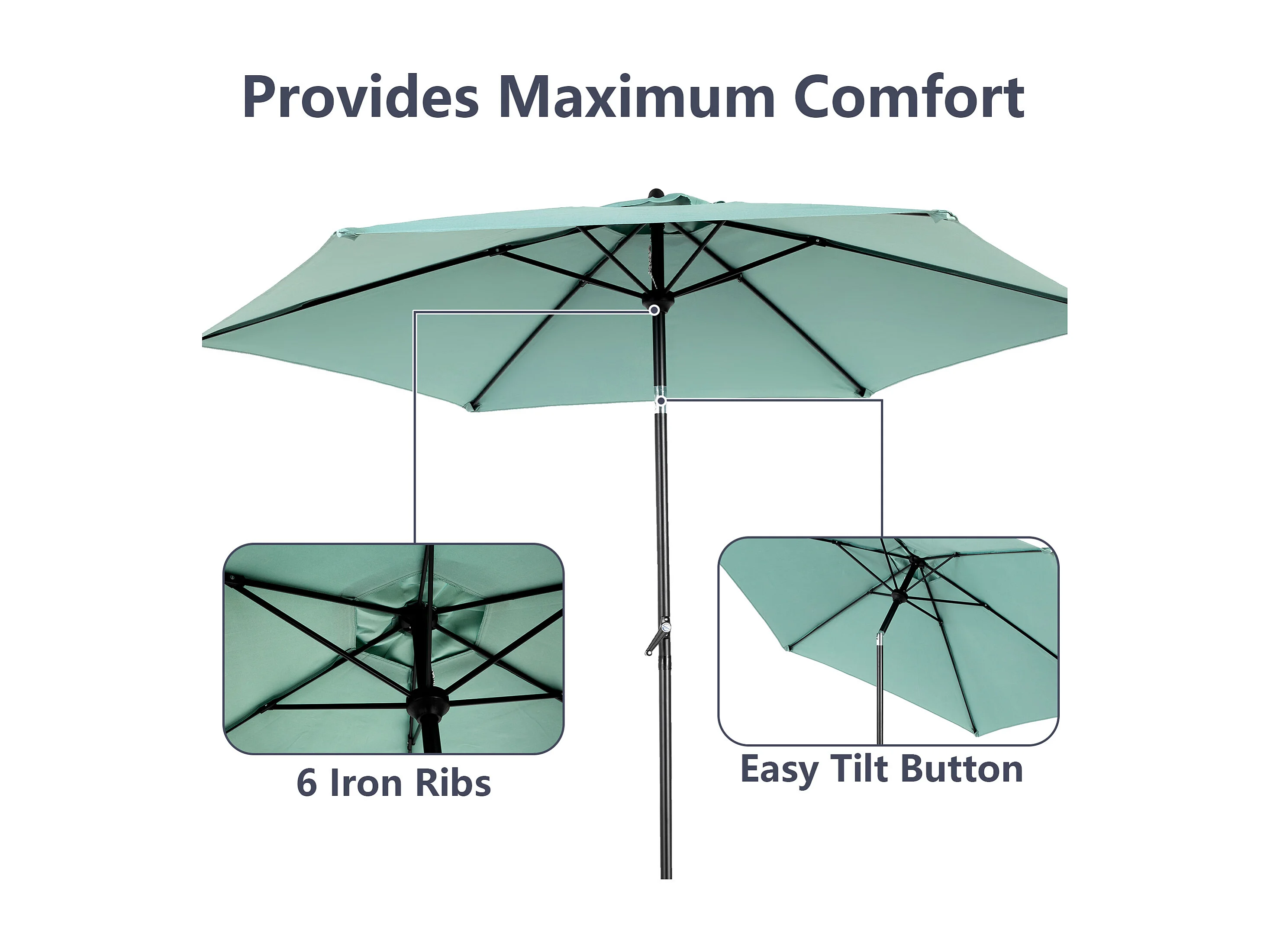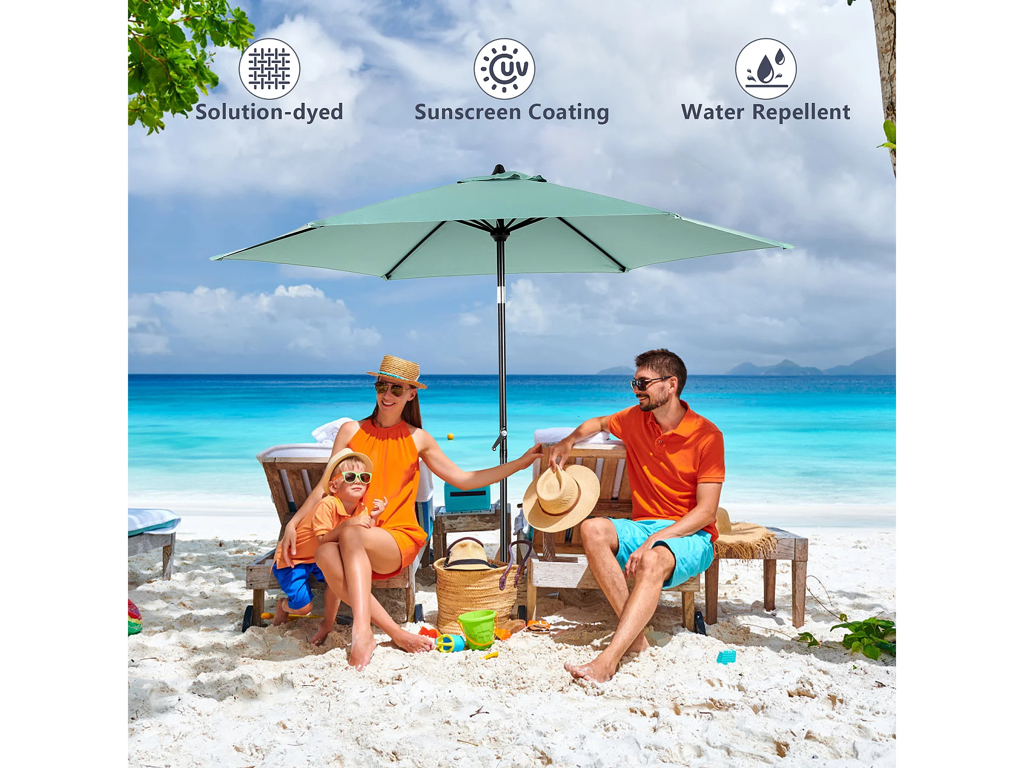 Parasol de jardin vert clair - Parasol extérieur monoposte - Protection solaire UPF 50+ - Grande taille de 264 cm pour terrasse et balcon
