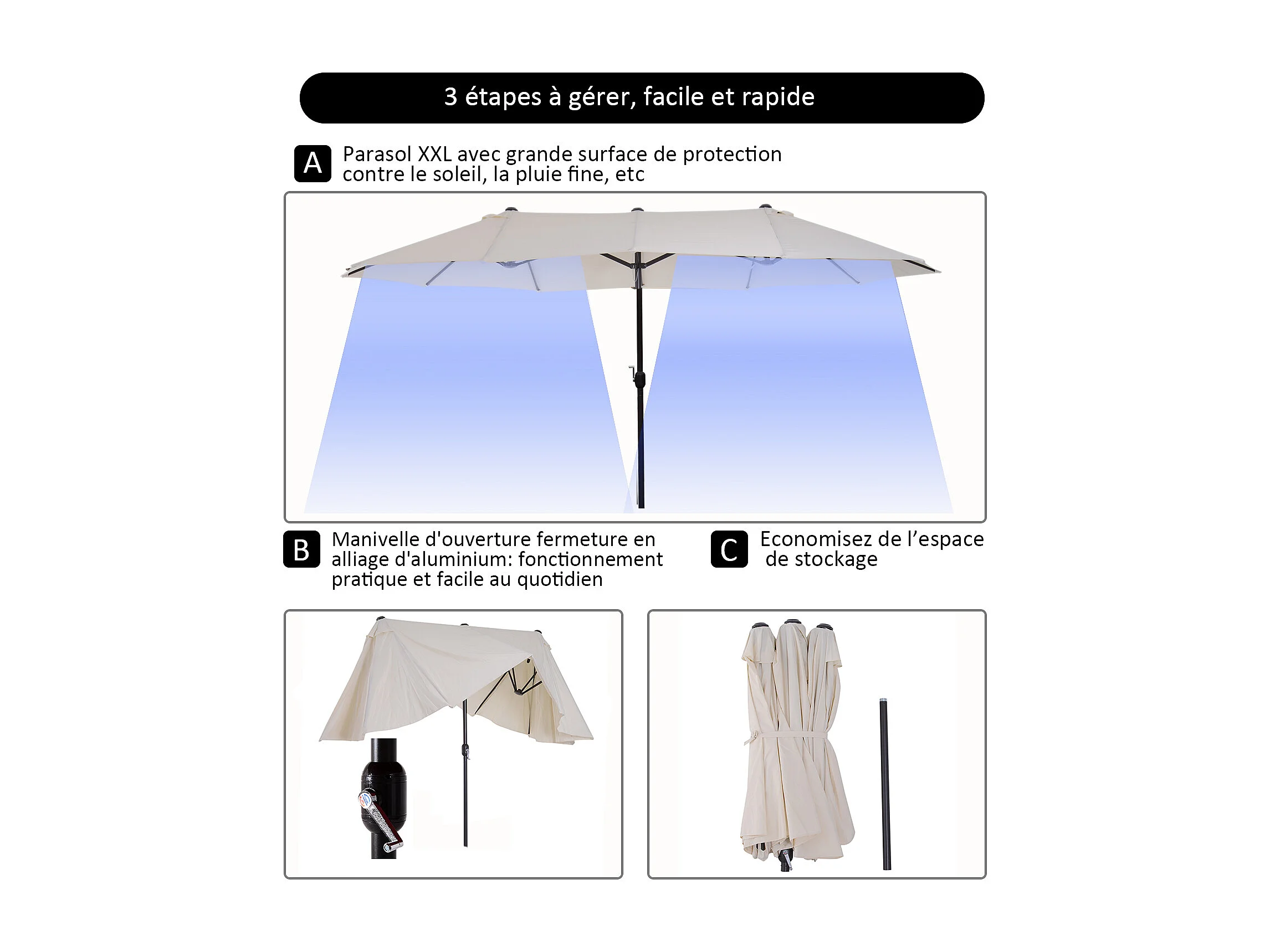Parasol de jardin XXL parasol grande taille 4,6L x 2,7l x 2,4H m manivelle acier polyester haute densité crème