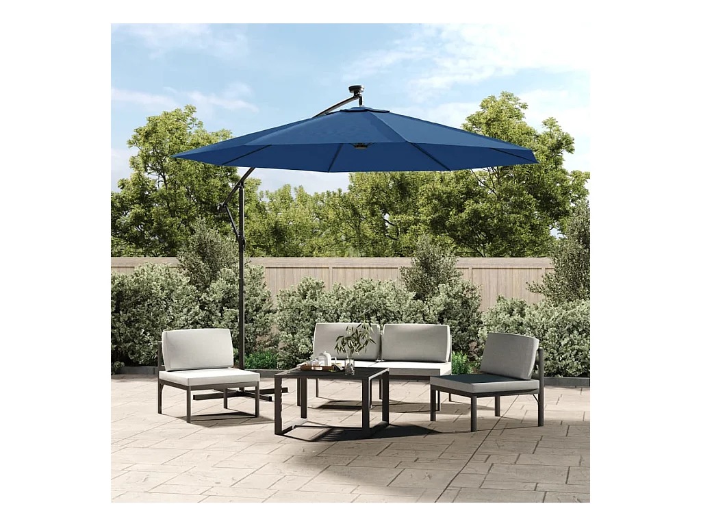 Parasol déporté à LED et mât en acier 300 cm Azuré FR16539