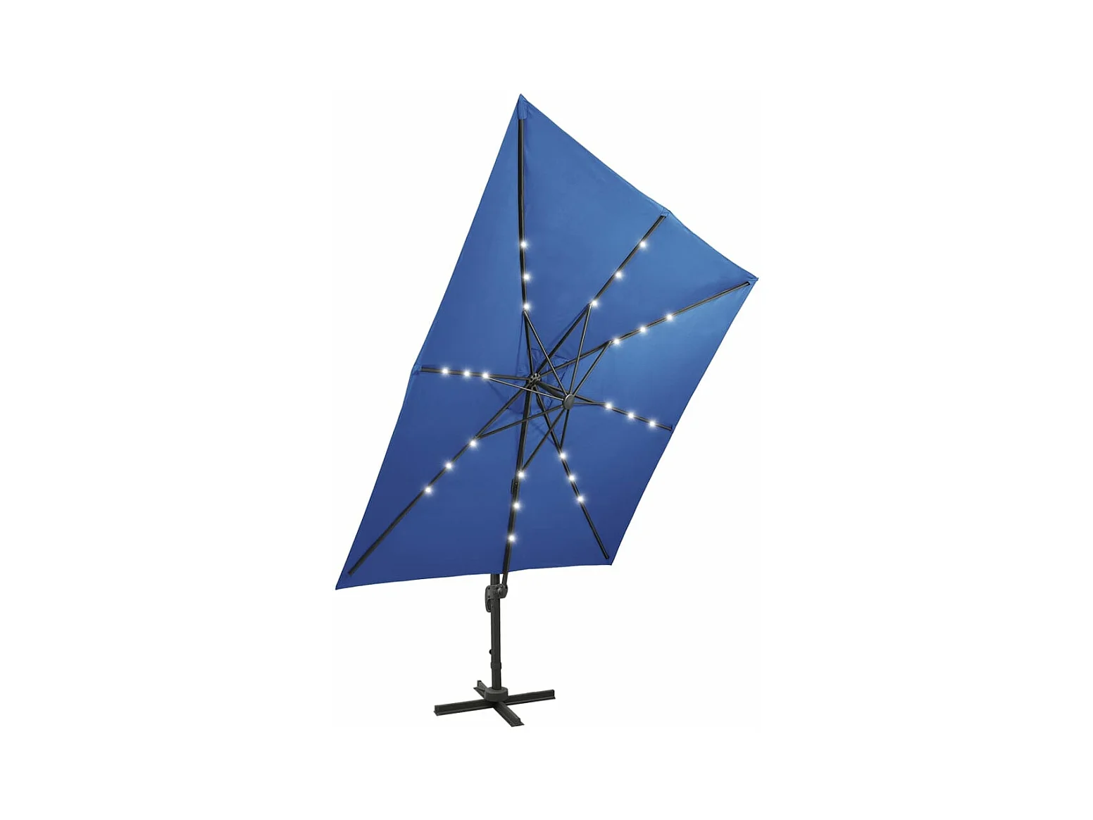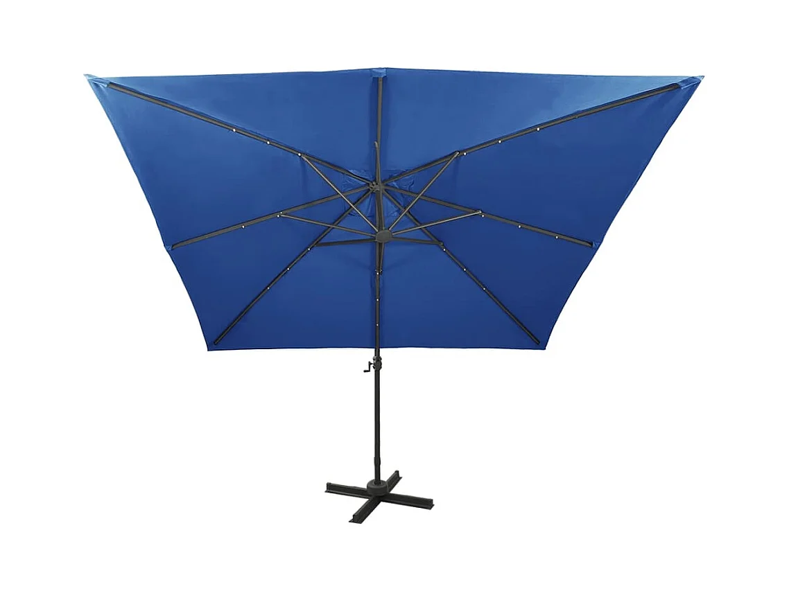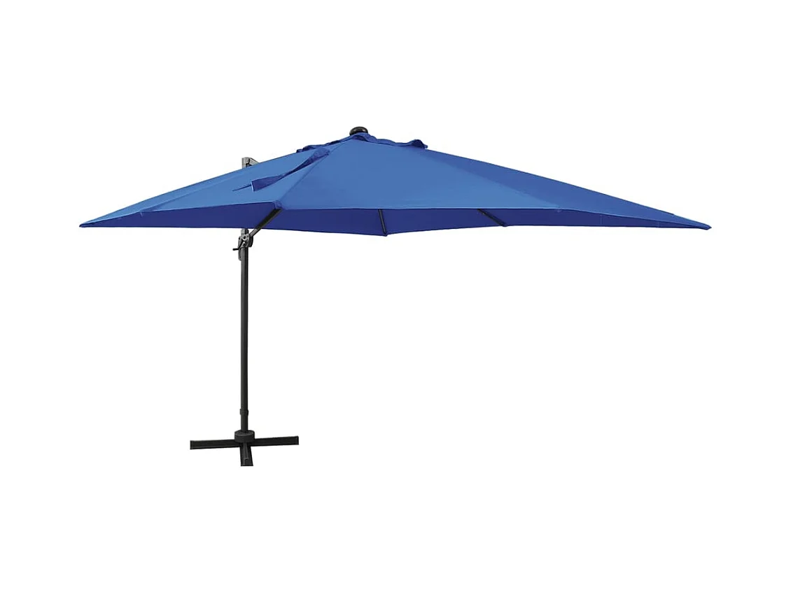 Parasol déporté avec mât et lumières LED Bleu azur 300 cm FR57366
