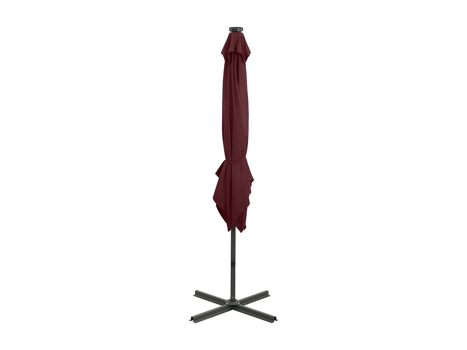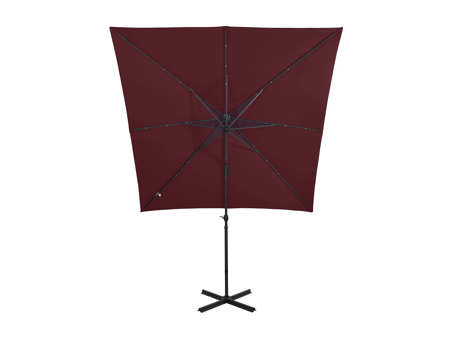 Parasol déporté avec mât et lumières LED Rouge bordeaux 250cm