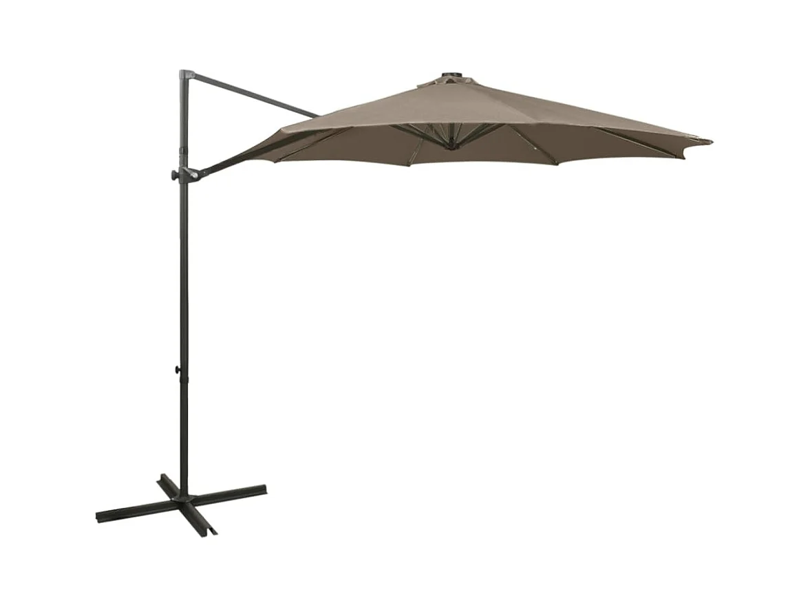 Parasol déporté avec mât et lumières LED Taupe 300 cm FR51832