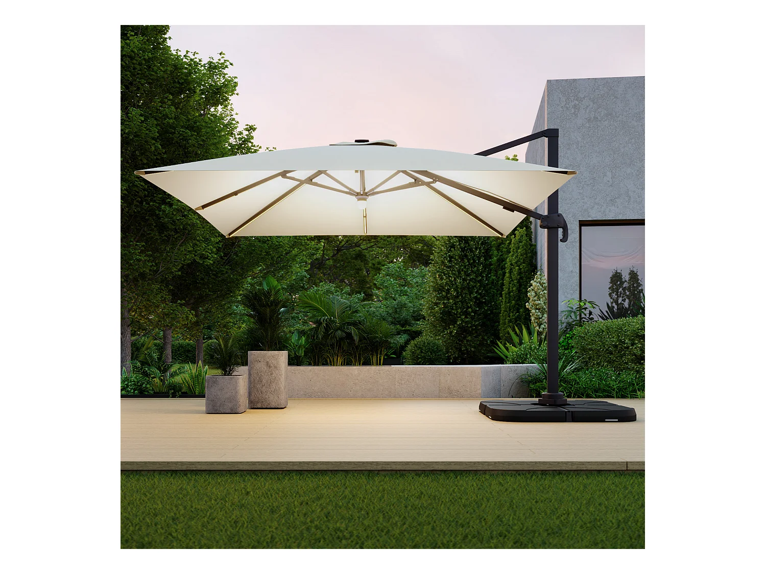 Parasol déporté LED 3x4m rectangle en aluminium + housse - rotatif 360° - Beige - ROME