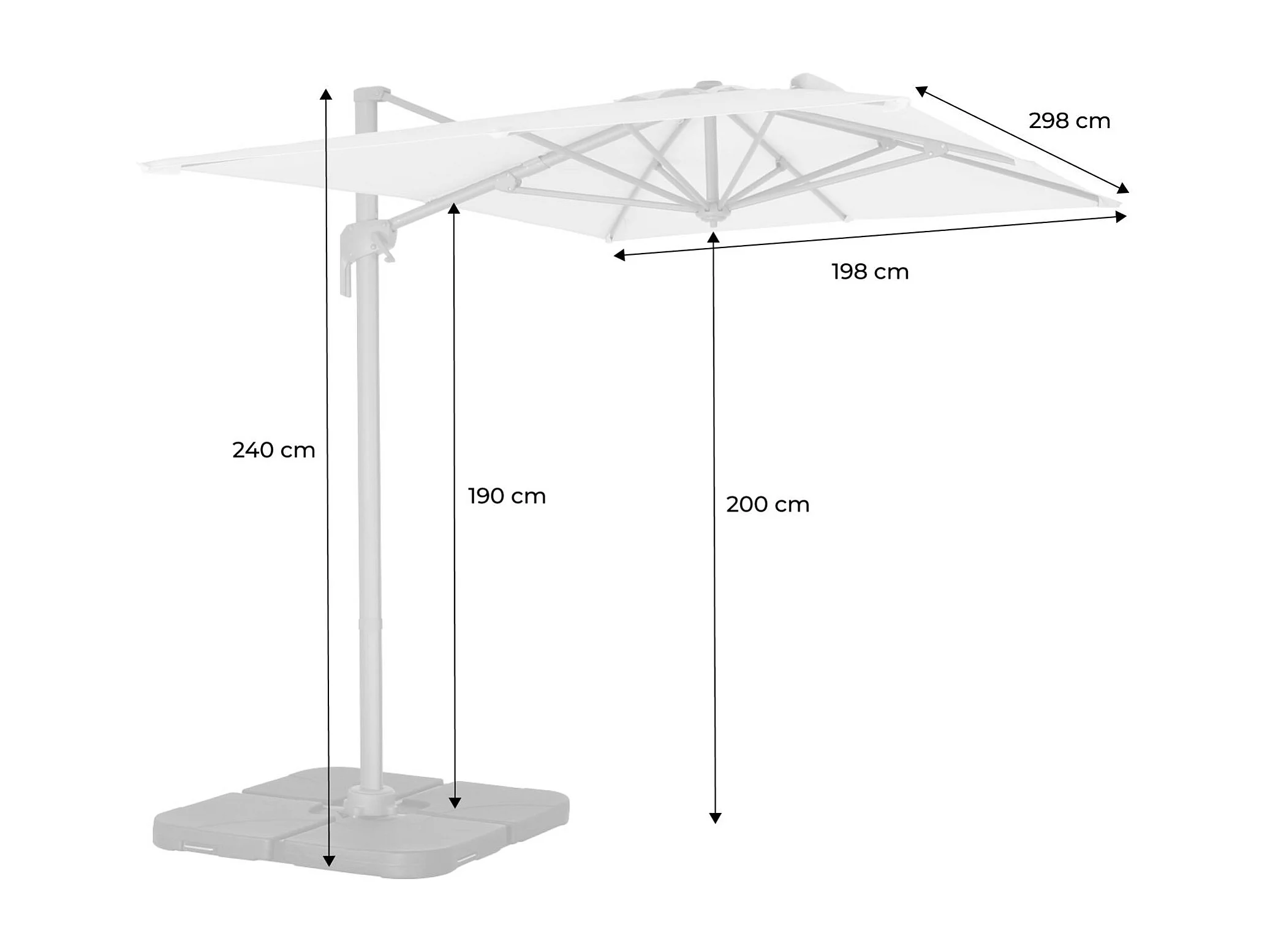 Parasol déporté rectangulaire 2x3m - Antibes - Ecru - Parasol excentré inclinable. rabattable et rotatif à 360°.