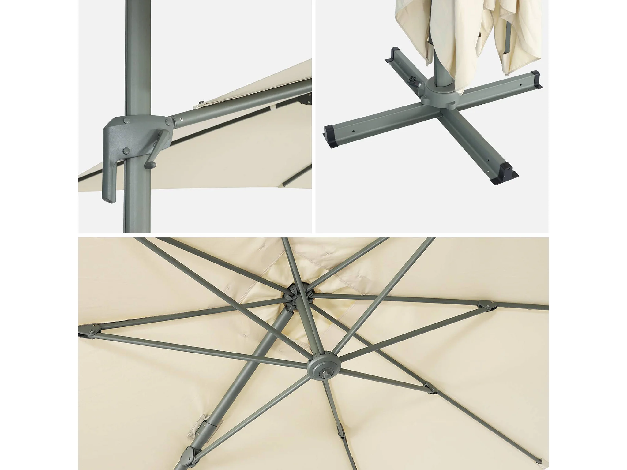 Parasol déporté rectangulaire 3x4m – Antibes – écru – parasol déporté. inclinable. rabattable et rotatif à 360°